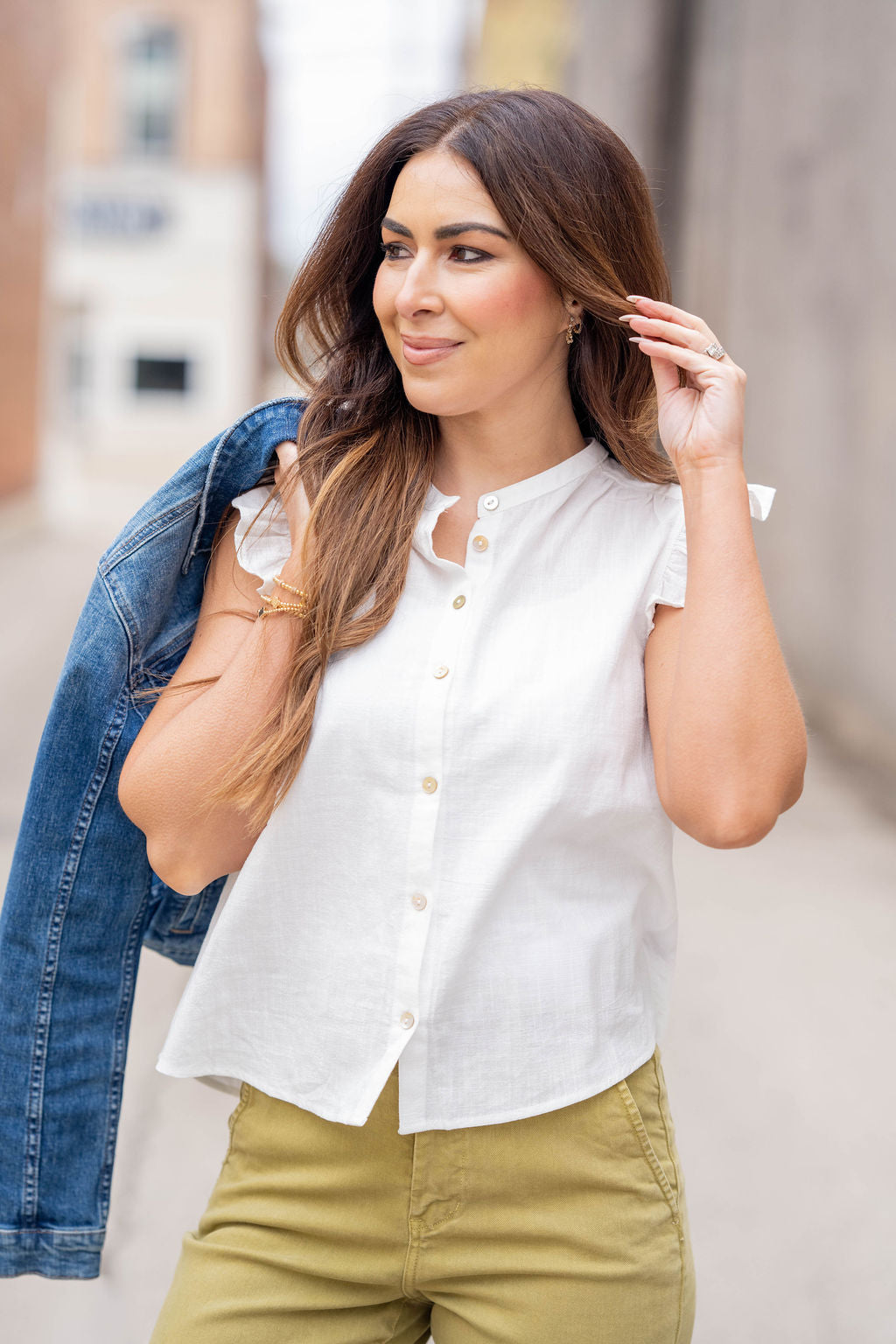 Ruffle Trim Button Front Tank