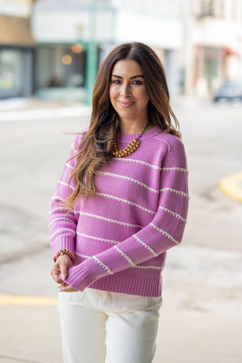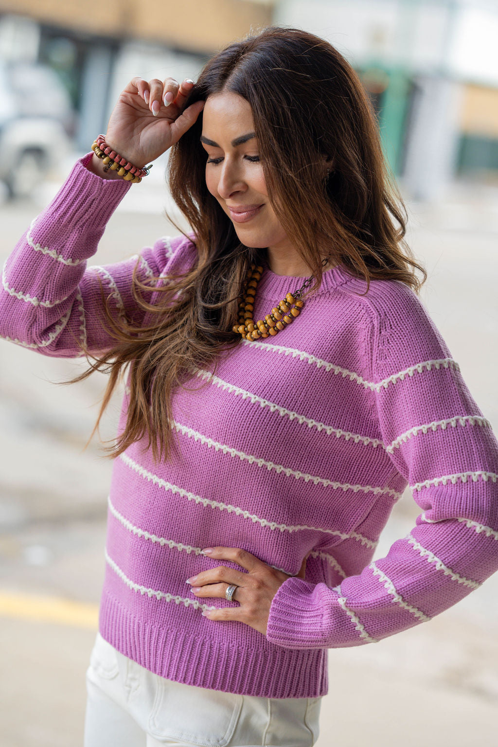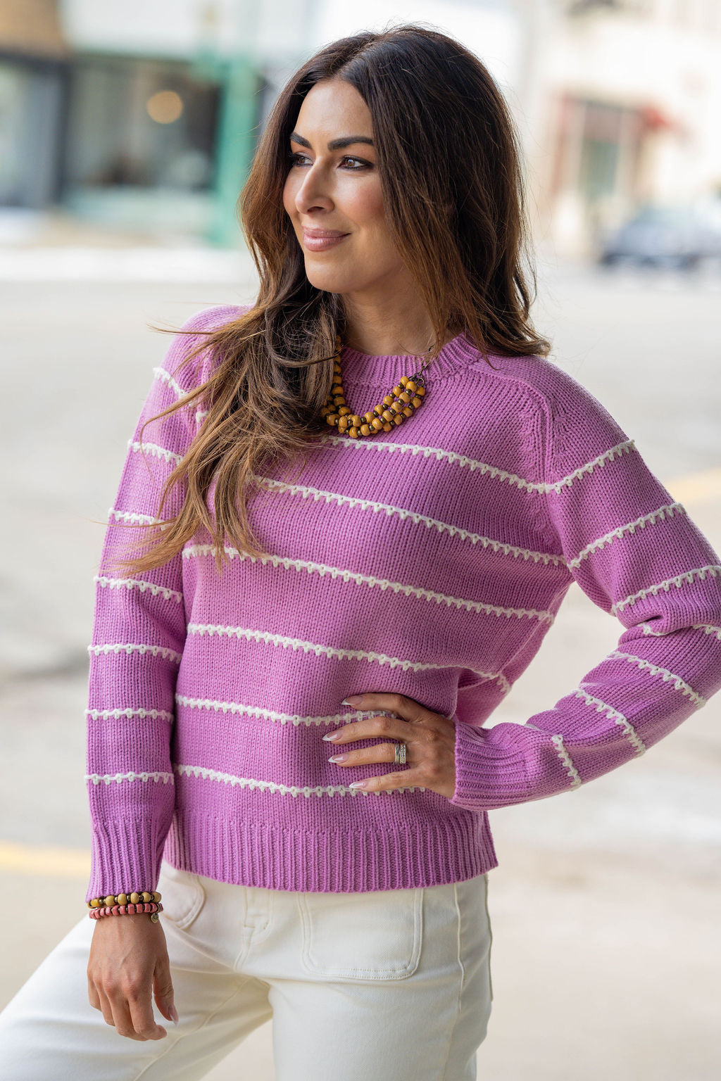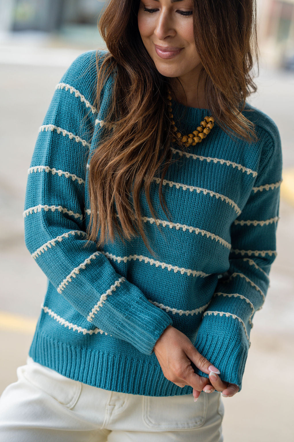 Is it even possible to have too many sweaters?! We don’t think so either! This sweater has the perfect stitch stripes accents that come together to create this staple piece that you NEED in your wardrobe! Dress this up or down with ease, add a pop of color with our Betsey’s Jeggings or keep it simple with your favorite denim, however you choose to style it, we know this will be one of your favorites!
