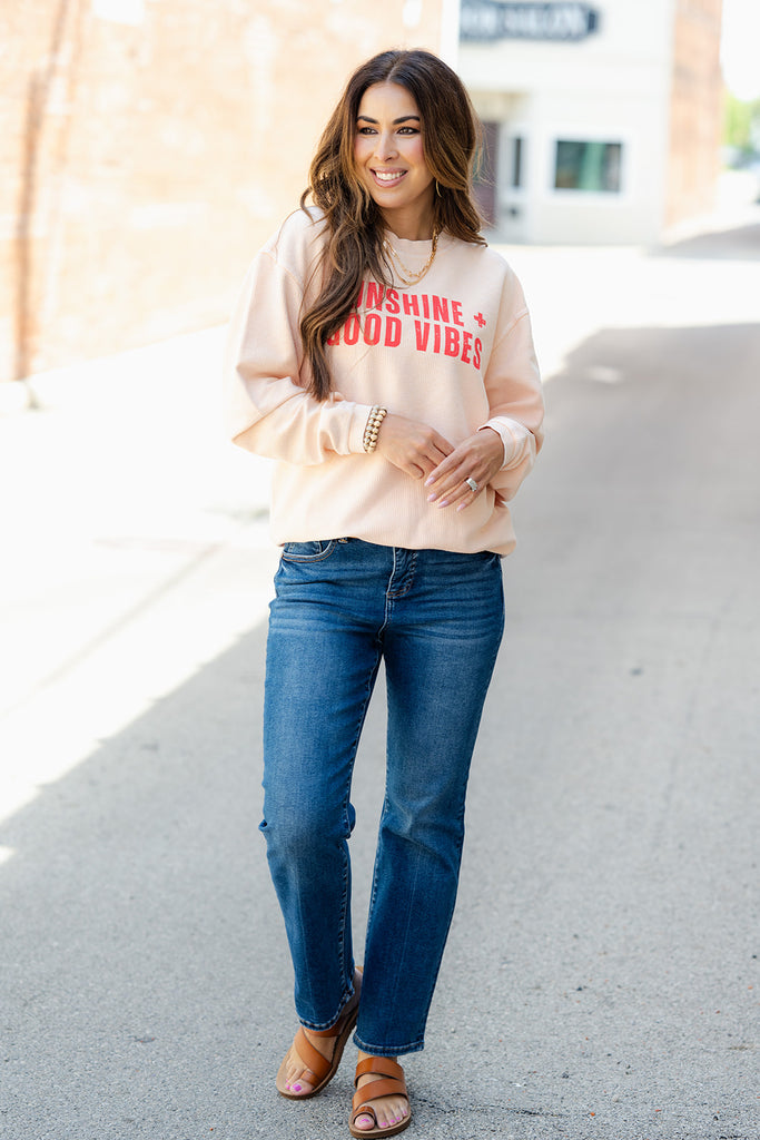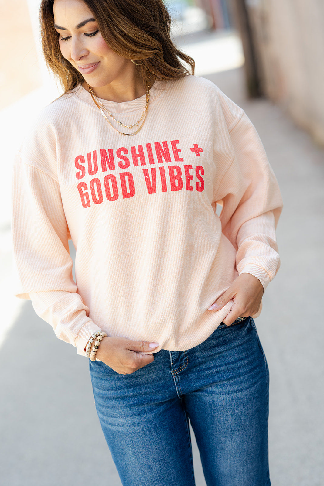 Sunshine & Good Vibes Ribbed Graphic Crewneck