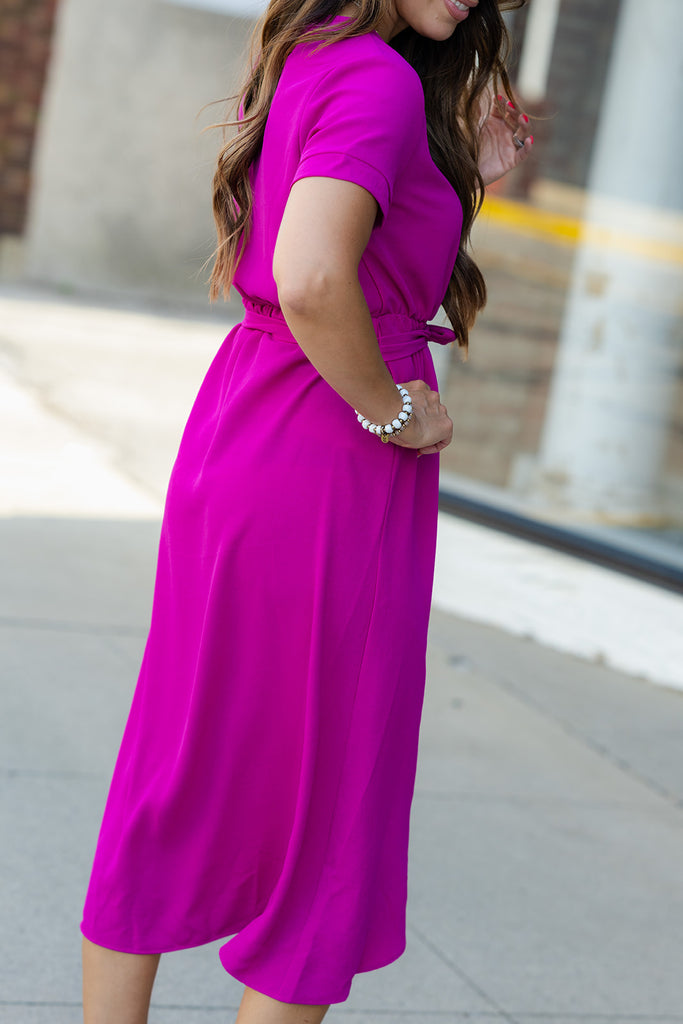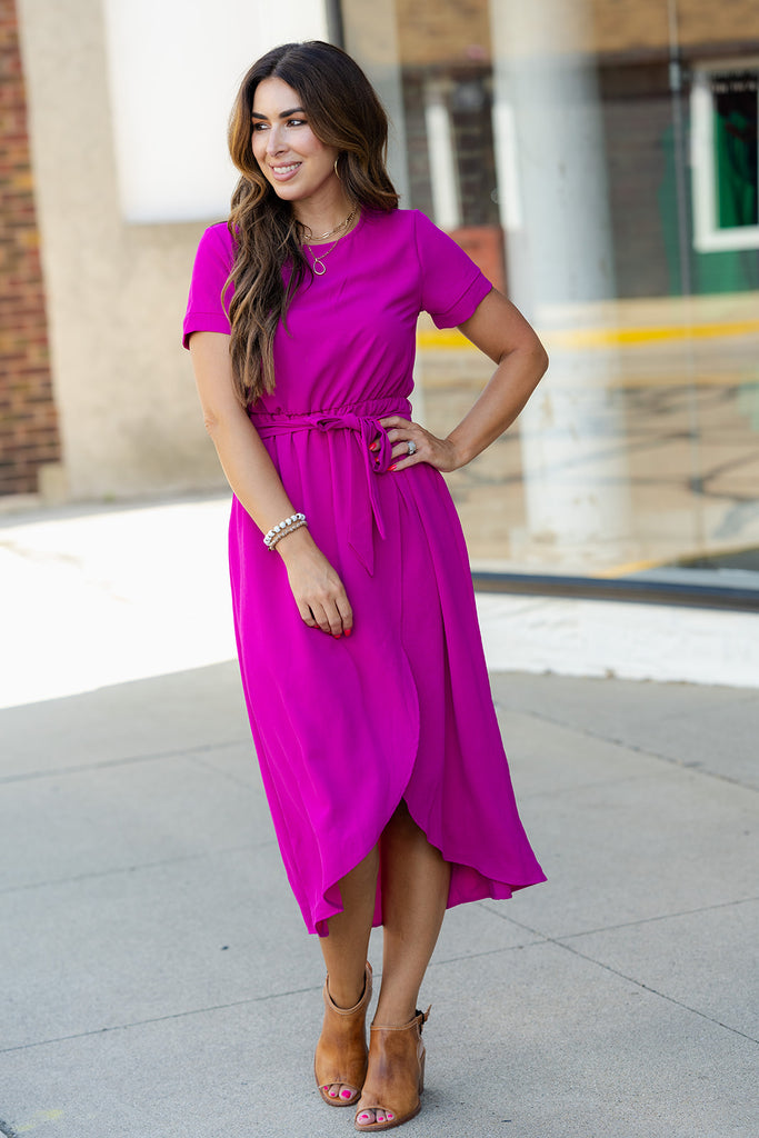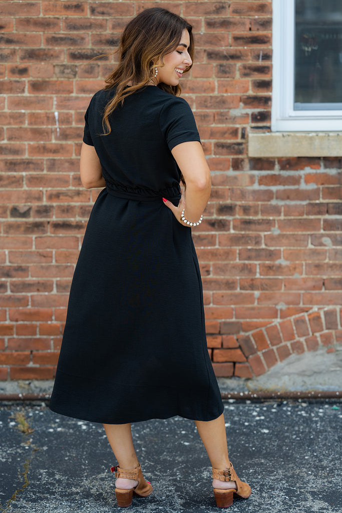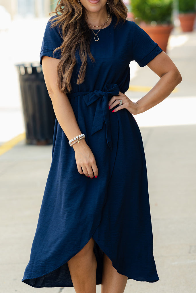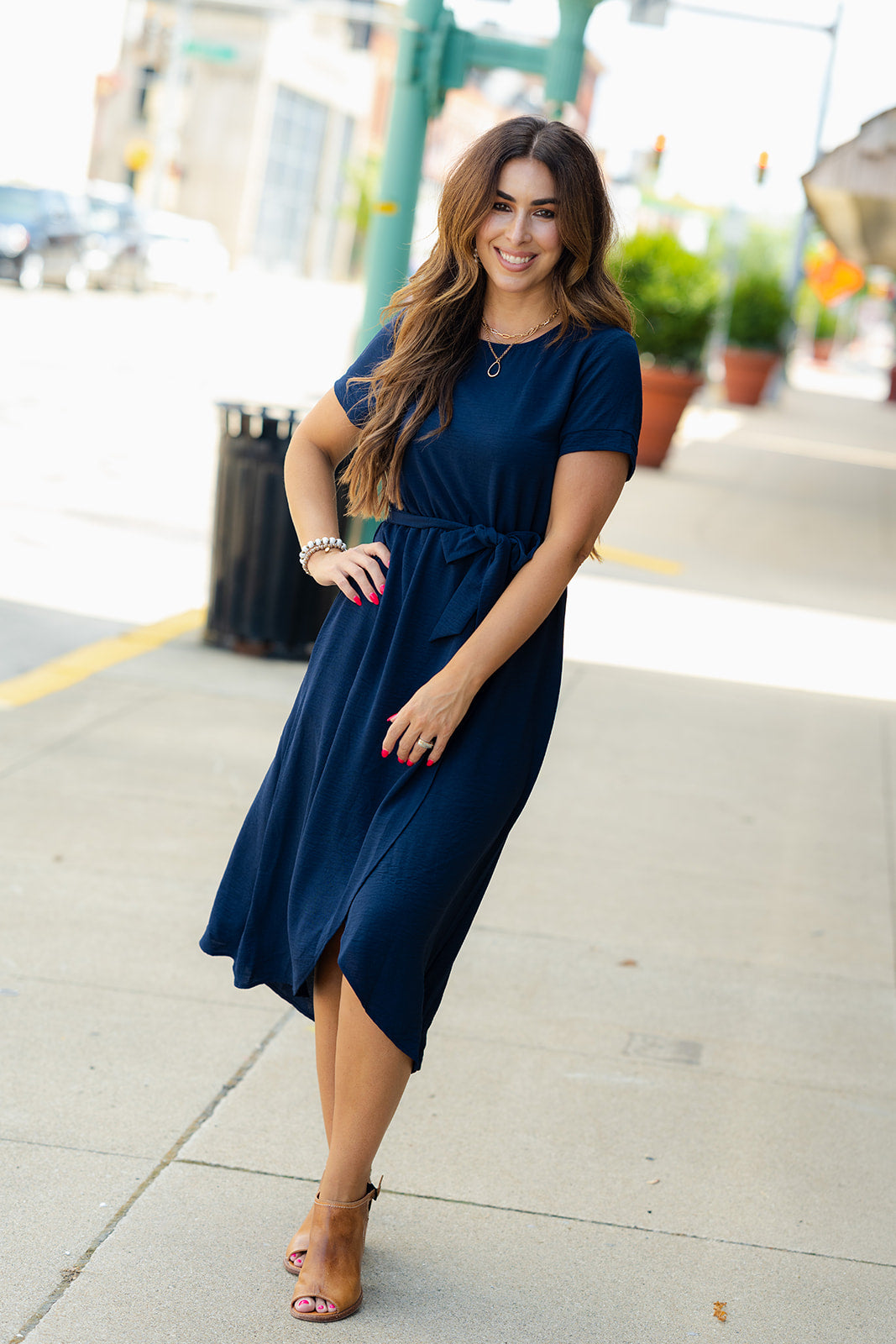 Midi dresses are the perfect piece for any occasion! They’re cute and trendy, but also add that comfort that every girl wants. This midi is definitely not an exception, and features a tie waist which gives off a slimming effect with short sleeves and a wrap style bottom to give a unique look. Wear alone in the warmer months or add a blazer, cardigan, or jacket for the cooler ones!