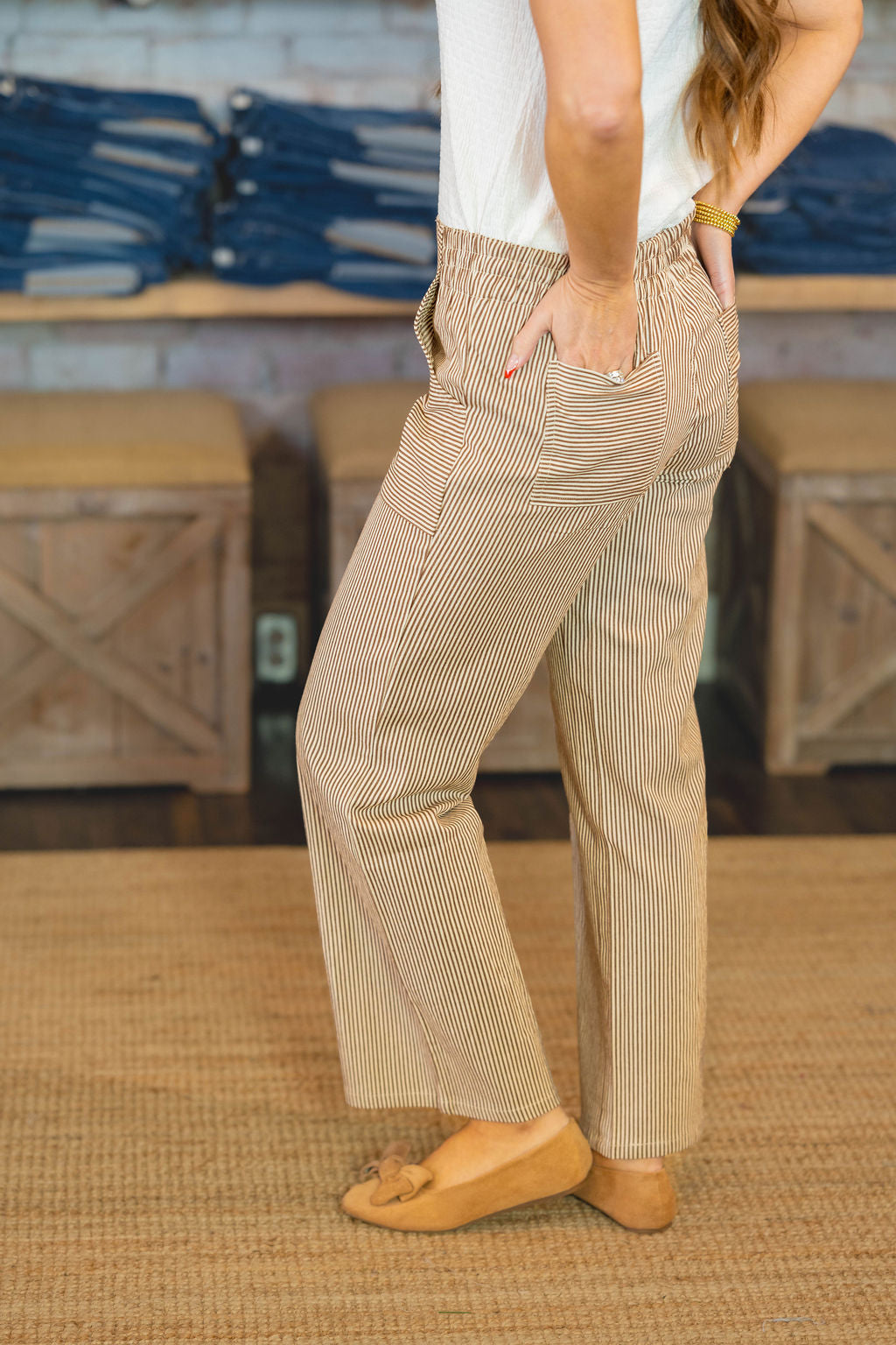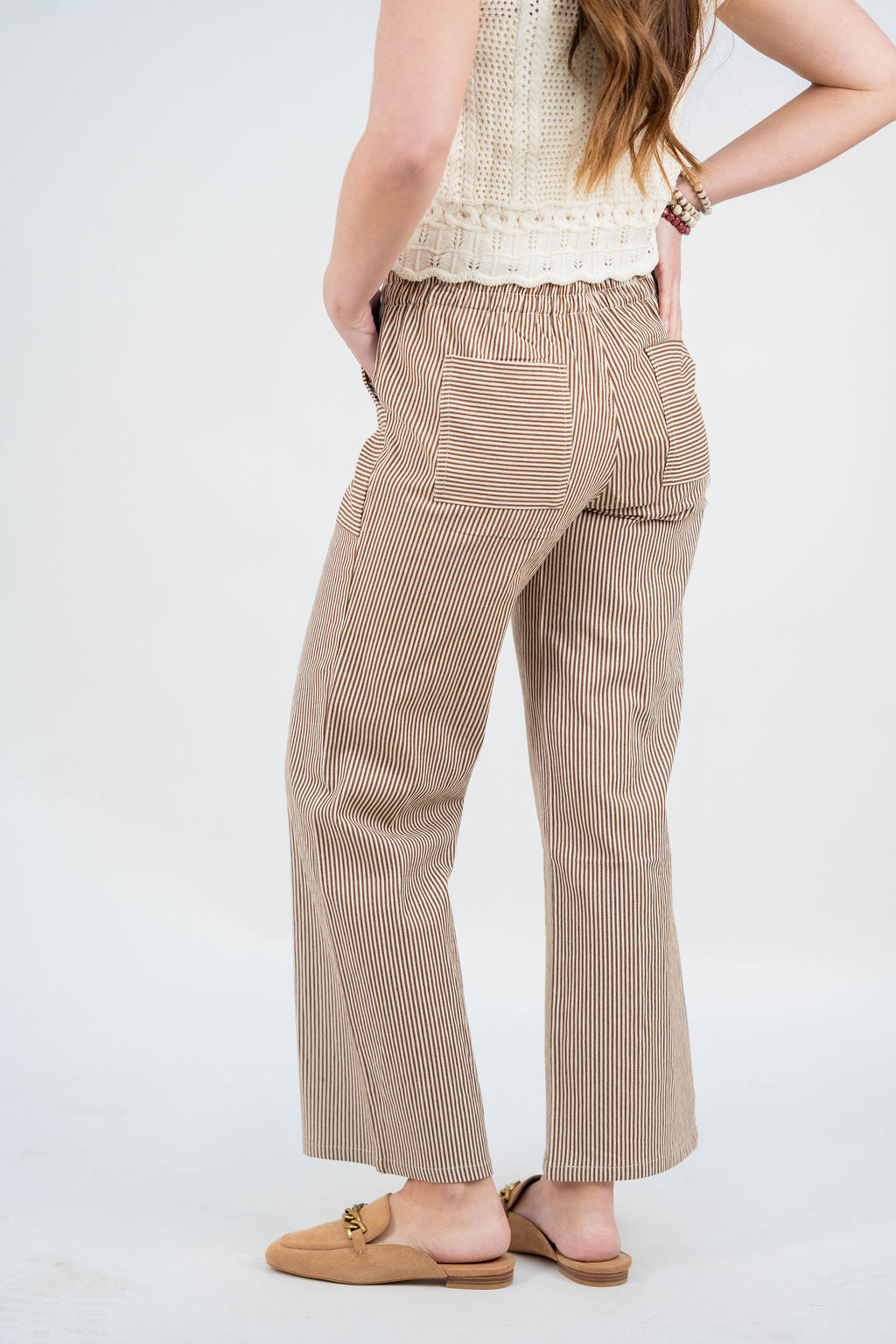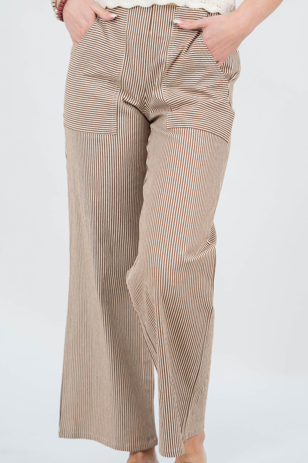 Comfort meets subtle detail in these easy-to-wear striped pants. Designed with a relaxed wide-leg silhouette and patchwork stripe panels, they add just the right amount of interest while staying effortlessly versatile.