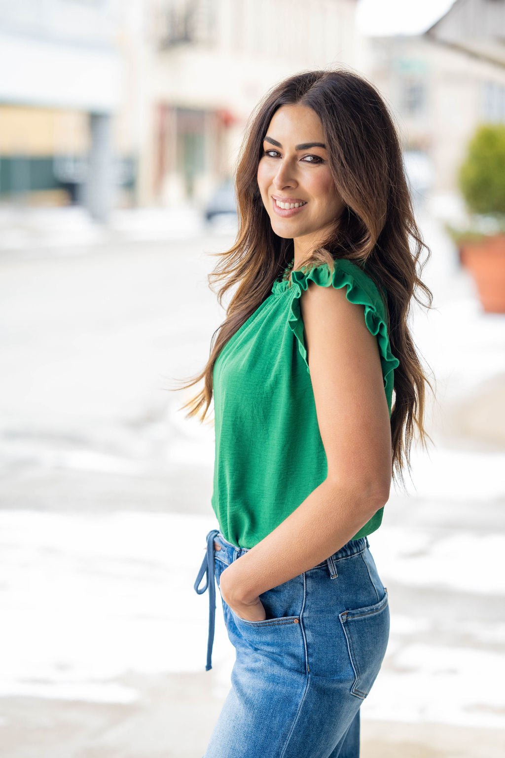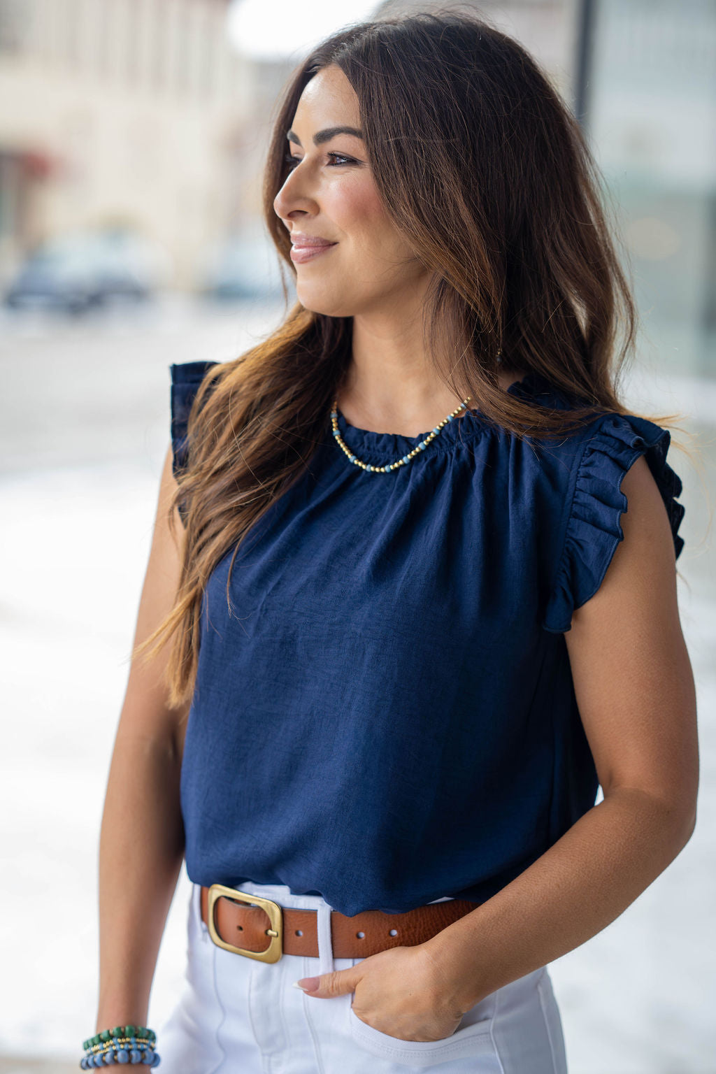 Simple with just the right touch of feminine detail, this ruffle-sleeve top is an effortless wardrobe staple. The soft fabric drapes beautifully, while the layered ruffle shoulders add movement and charm without overwhelming the look.