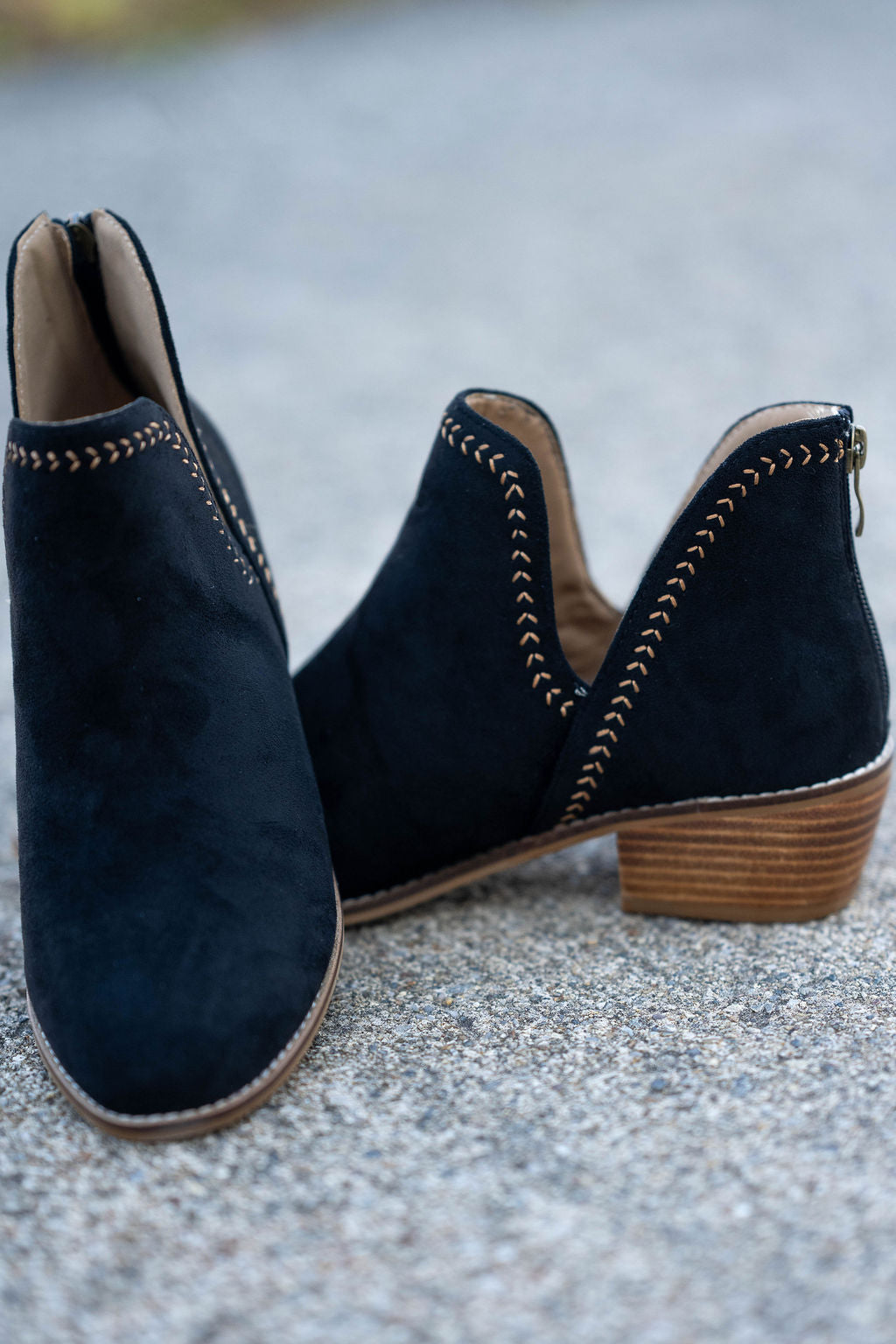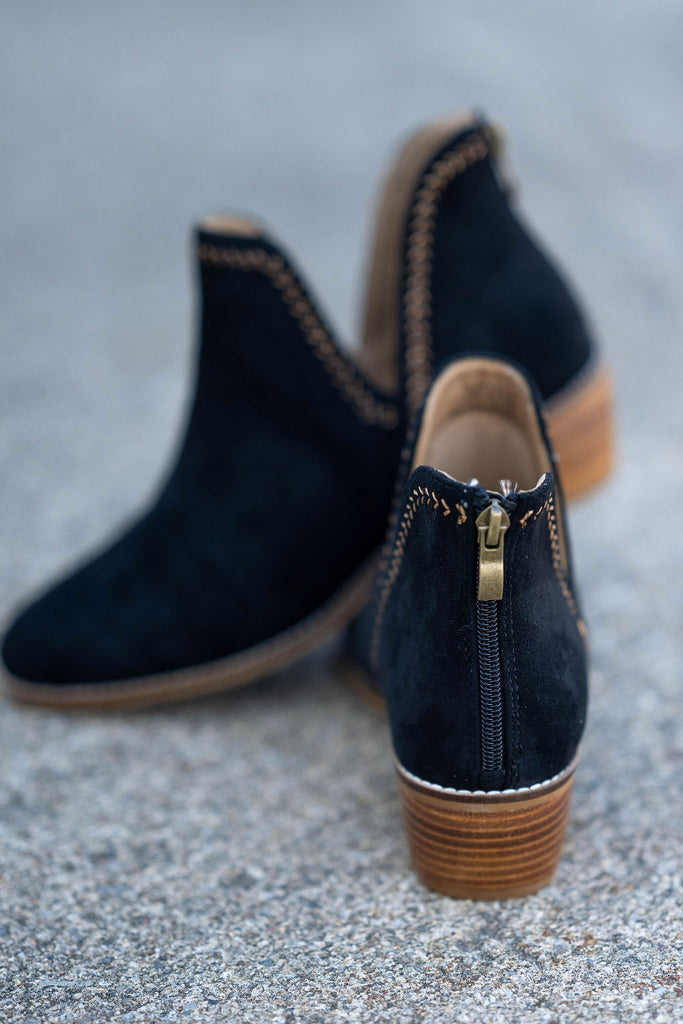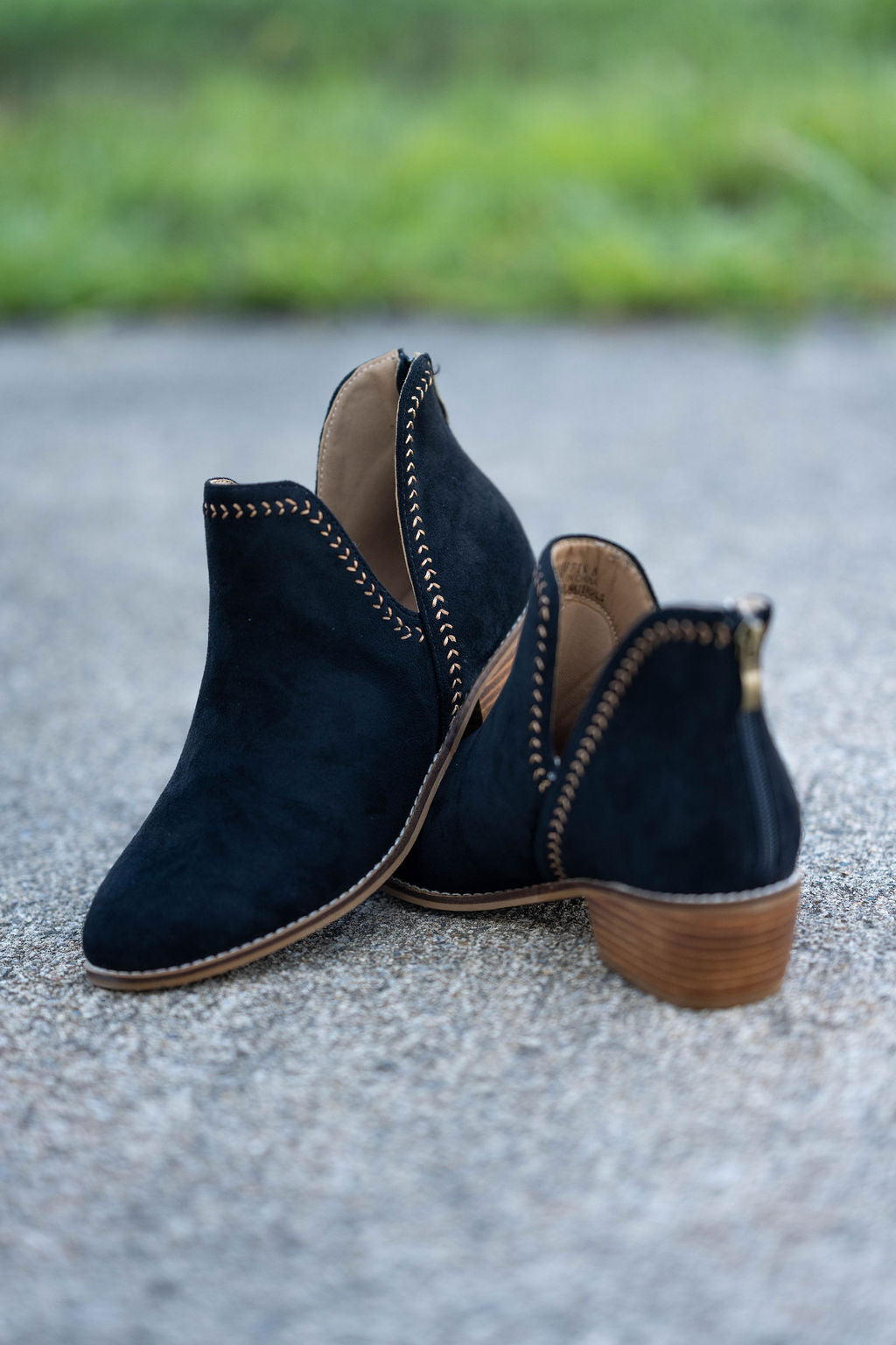 Step out in style with the Hey Girl Side Step Booties in black! Featuring a soft suede-like finish, chic side cutouts, and a comfy low stacked heel, these booties are perfect for any outfit. Easy back zipper for on-the-go days—grab your pair today!