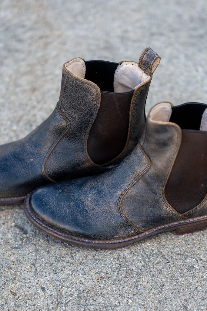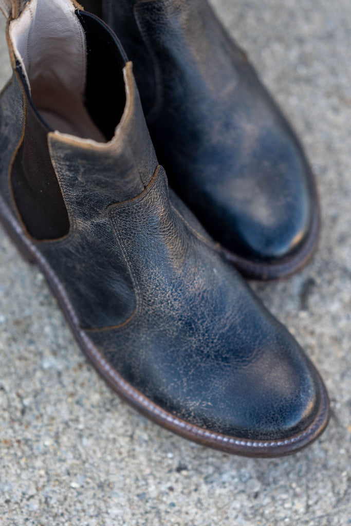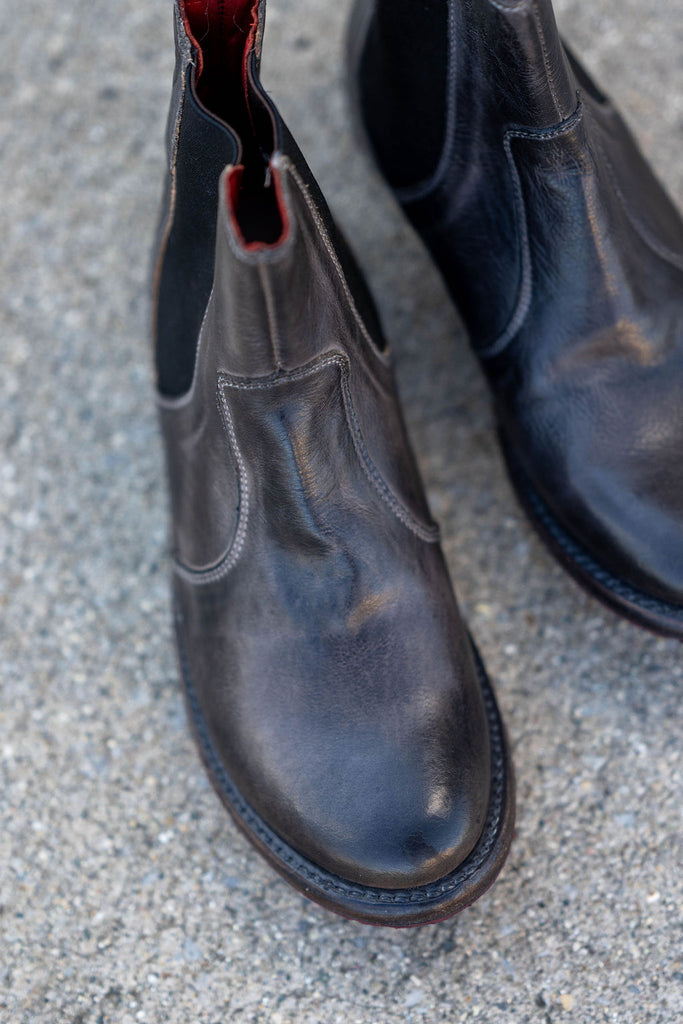 Nandi is a a short leather boot that’s confident and easy to transition from week to weekend. The black lux finish almost looks like a crackle effect, and will change with each wear. Create your own unique look with this perfect short boot.