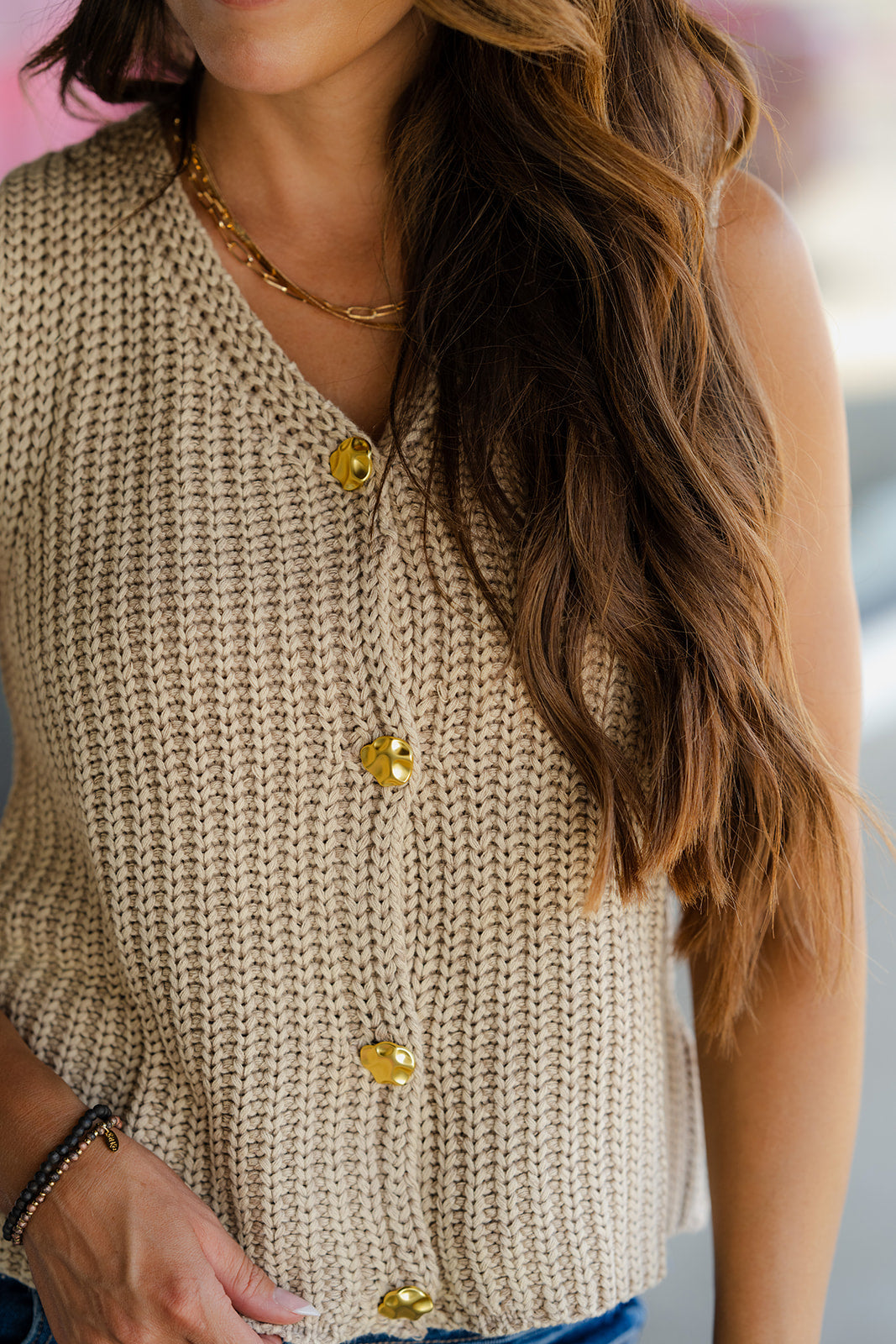 Gold Button Knit Tank