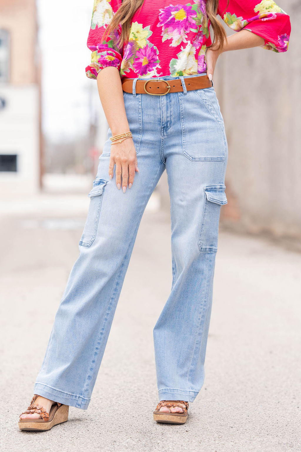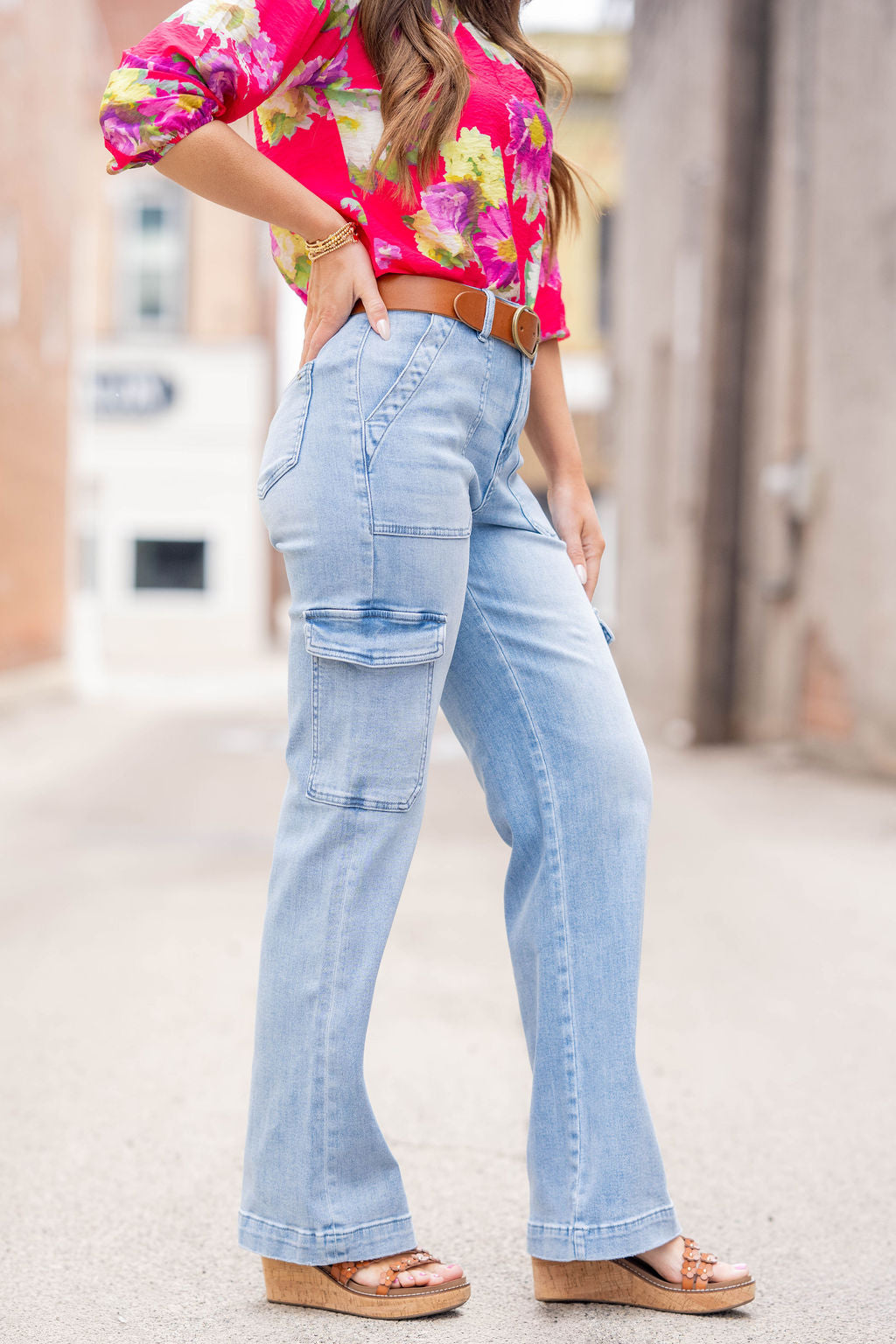 Our new favorite jeans have arrived! These super high-rise cargo jeans are so fun! Pair with a blouse, basic or graphic tee, sweater, graphic crewneck, whatever!