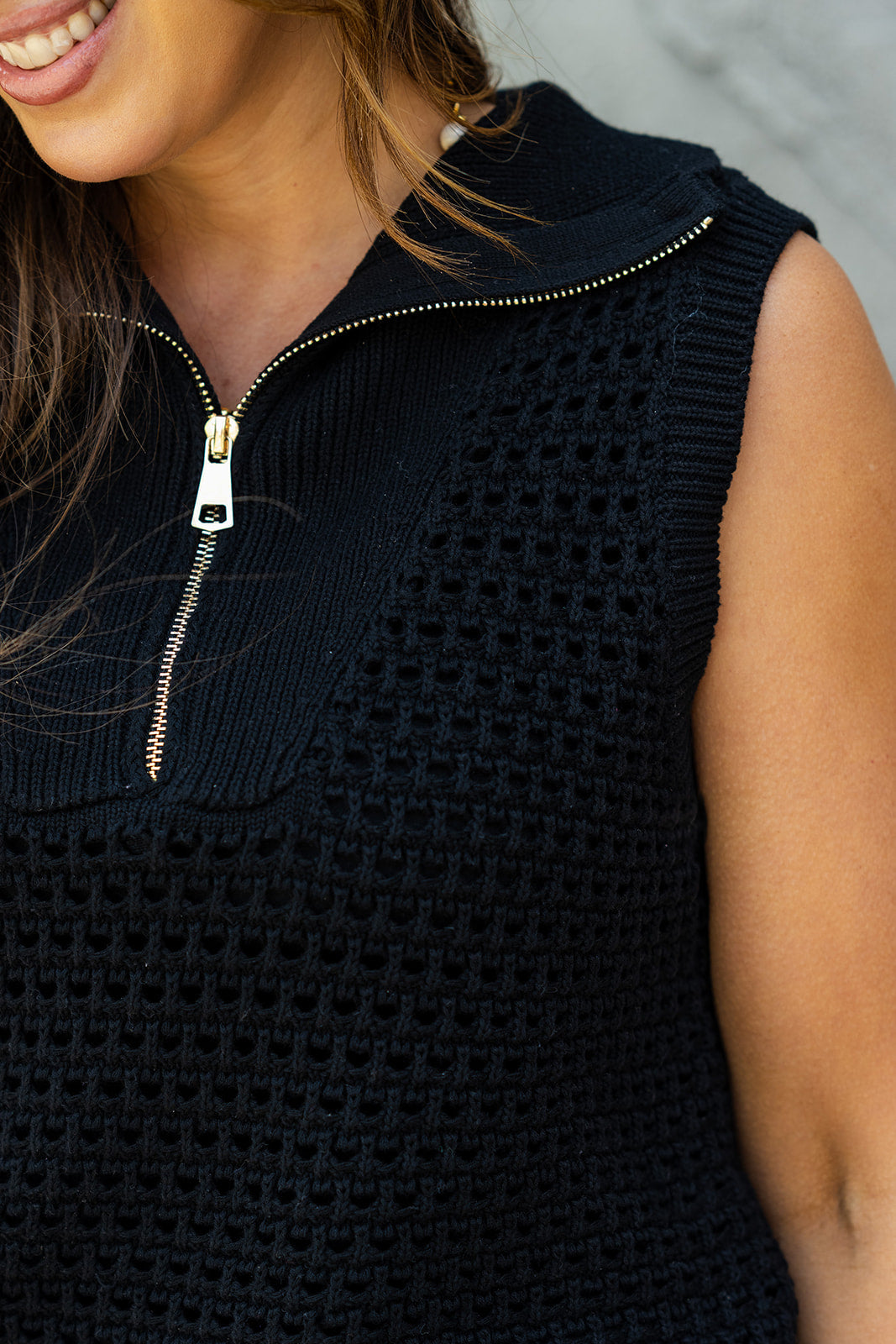With the open weave and quarter zip detailing, this tank is unlike all the rest! Pair with a skirt or shorts in the warmer months or use as a base for your blazers, cardigans, or jackets for the cooler ones! This can be dressed up or down with ease, making it a staple piece for your wardrobe!