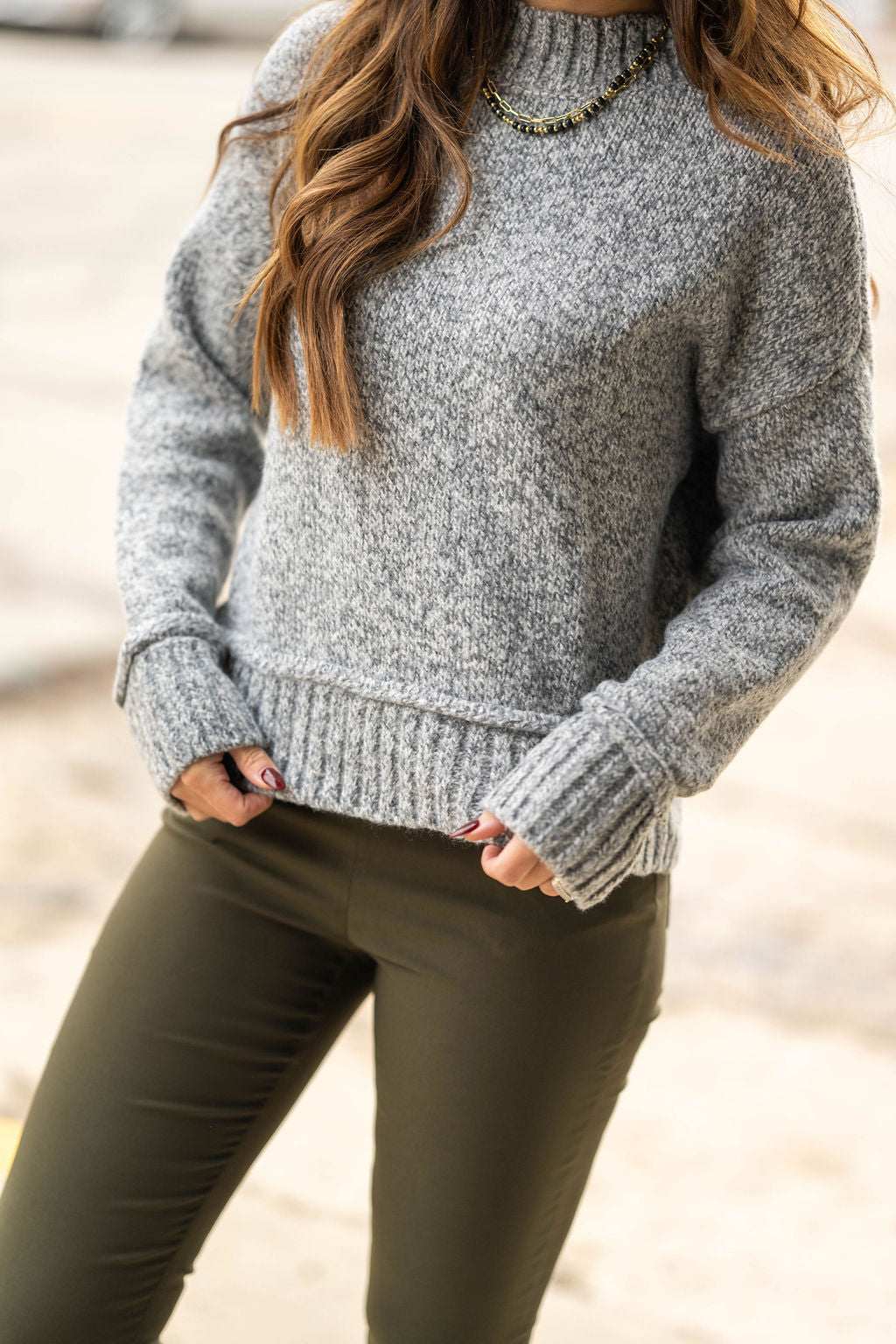 Stay warm in style with this ultra-cozy heathered sweater. Designed with a soft mock neck, relaxed fit, and chunky ribbed trim, it’s the perfect blend of comfy and polished. The textured knit adds depth while the longer sleeves give it that snuggly, effortless look you’ll want to wear on repeat.