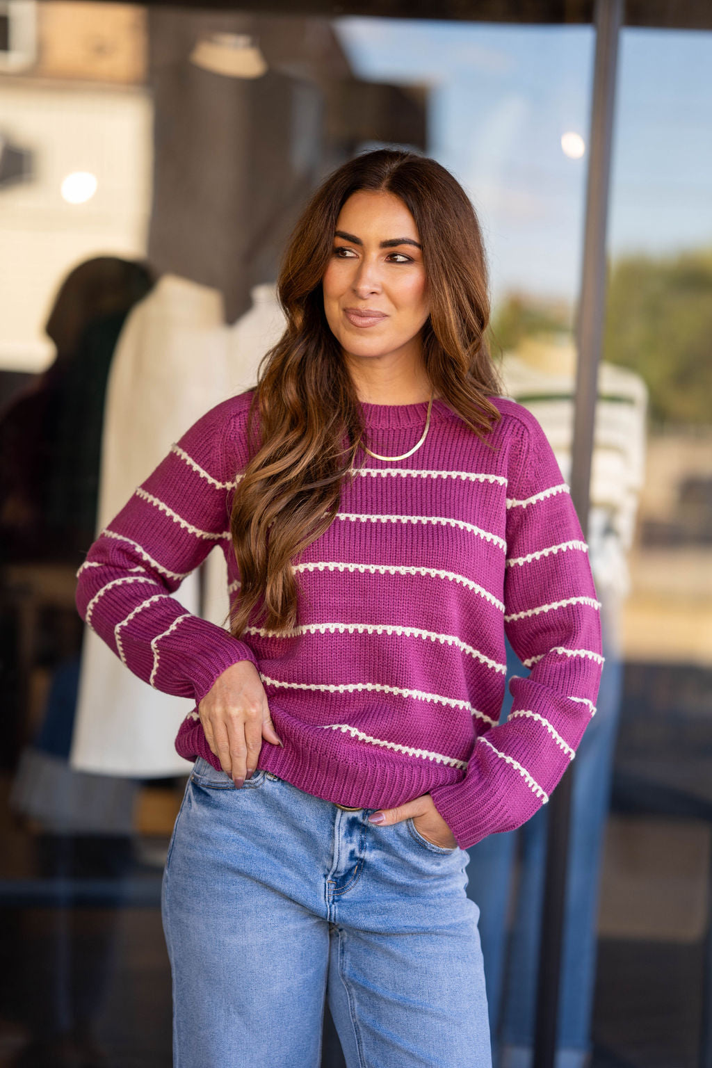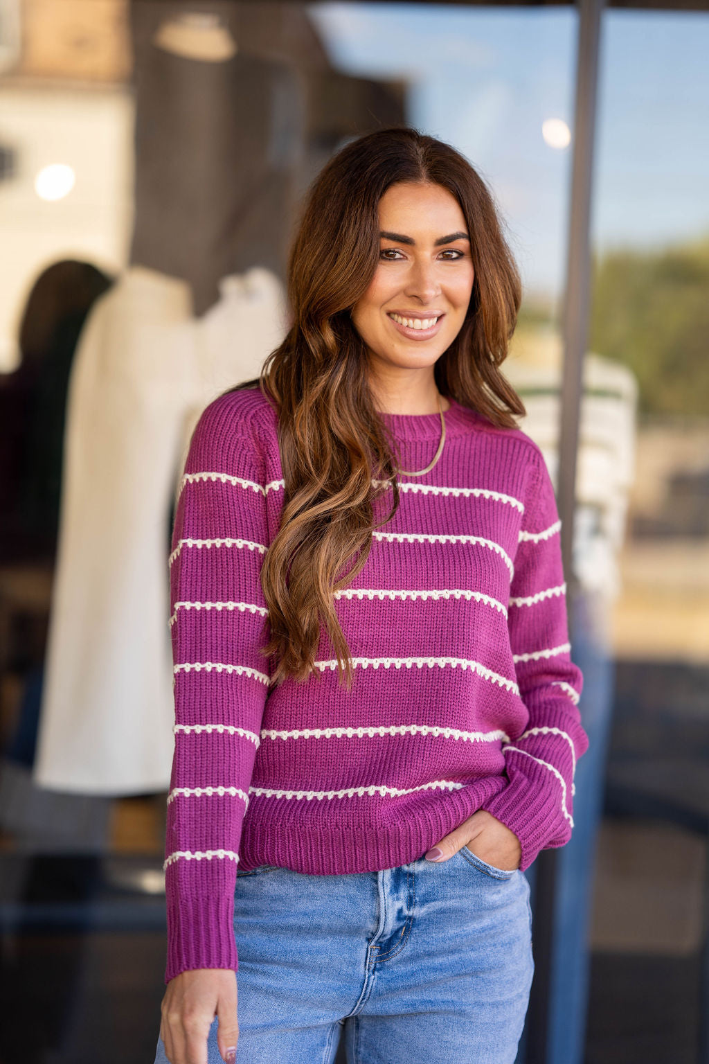 Is it even possible to have too many sweaters?! We don’t think so either! This sweater has the perfect stitch stripes accents that come together to create this staple piece that you NEED in your wardrobe! Dress this up or down with ease, add a pop of color with our Betsey’s Jeggings or keep it simple with your favorite denim, however you choose to style it, we know this will be one of your favorites!