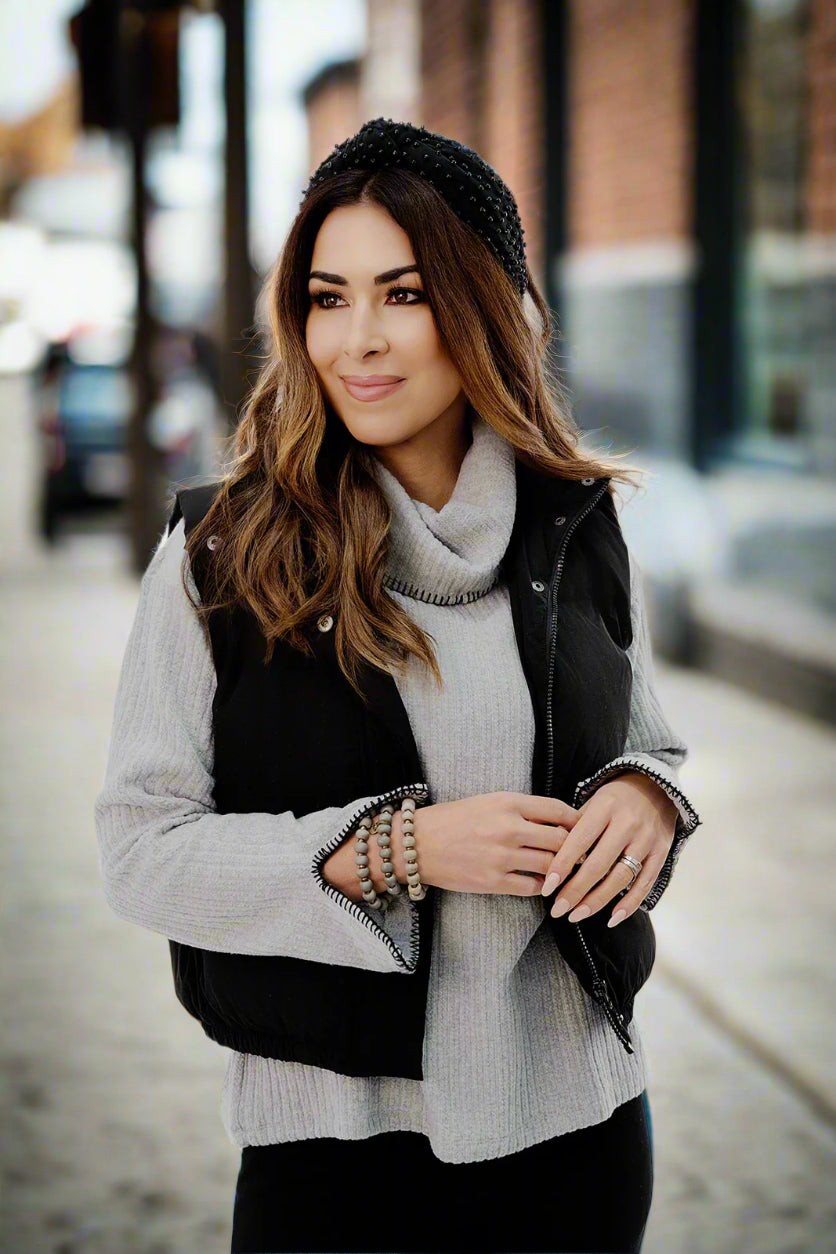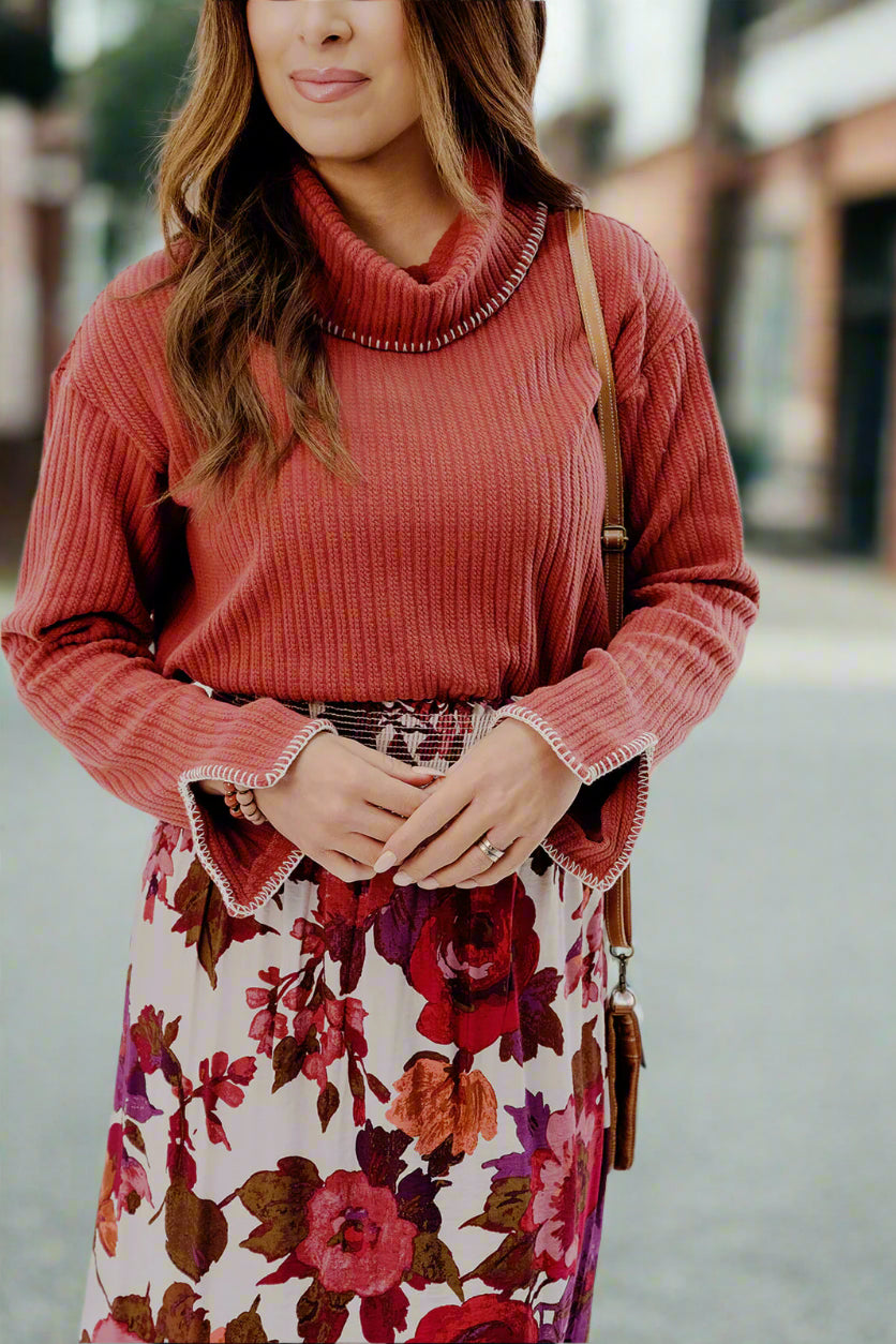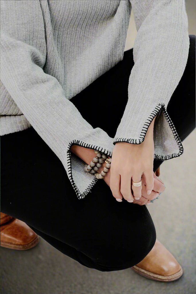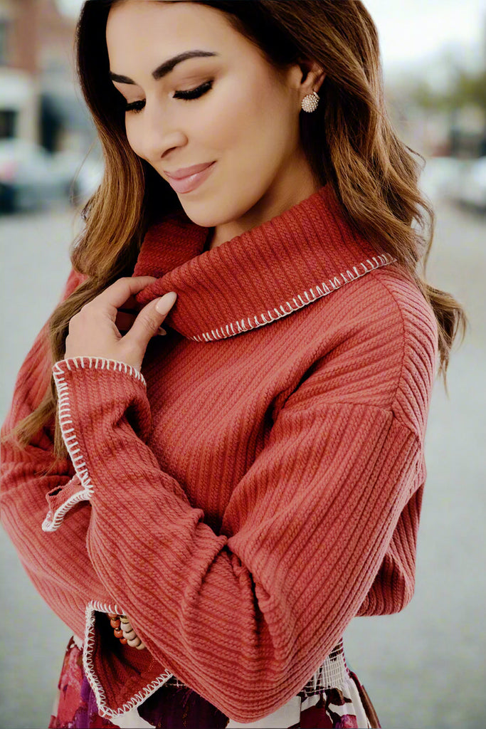 We just don't think you can ever have too many sweaters! This warm and cozy sweater has a fun texture and bold stitched accents around the trim that give it a unique and edgy feel! Pair with a skirt, jeans, joggers, leggings, or elevate with our Betsey's Jeggings! Chilly? Add a vest with ease!