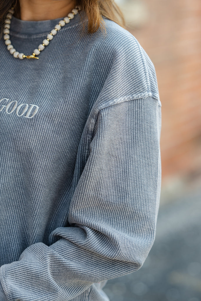 God Is Good Ribbed Graphic Crewneck