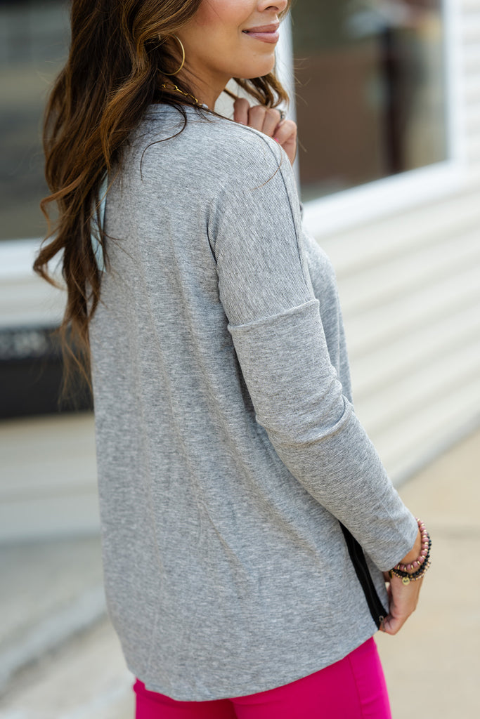 A fun heathered sweatshirt elevated with a side zipper that gives it that extra pizzaz! Pair with shorts in the warmer months or with denim, leggings, joggers, or our bold-colored Betsey's Jeggings for the cooler ones! Just add your favorite accessories to make the look truly yours!