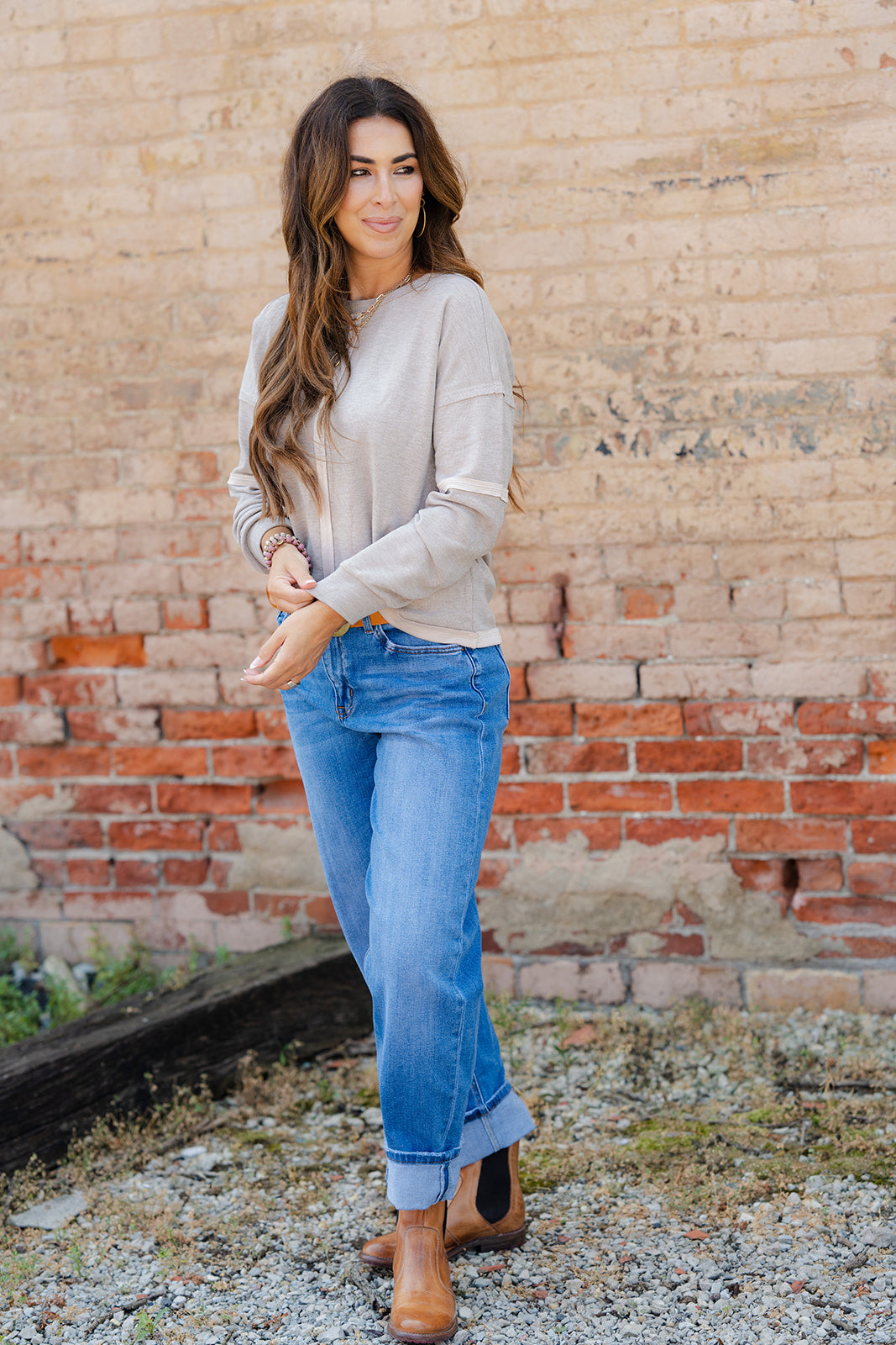 Sweatshirts are an essential part of every girls wardrobe! With its heathered look and raw stitched detailing, it is one you are sure to love, too! Wear it with shorts to transition you into warmer months or with a vest or jacket for the cooler ones! The simplicity of this top allows you to dress it up or down for everyday wear.