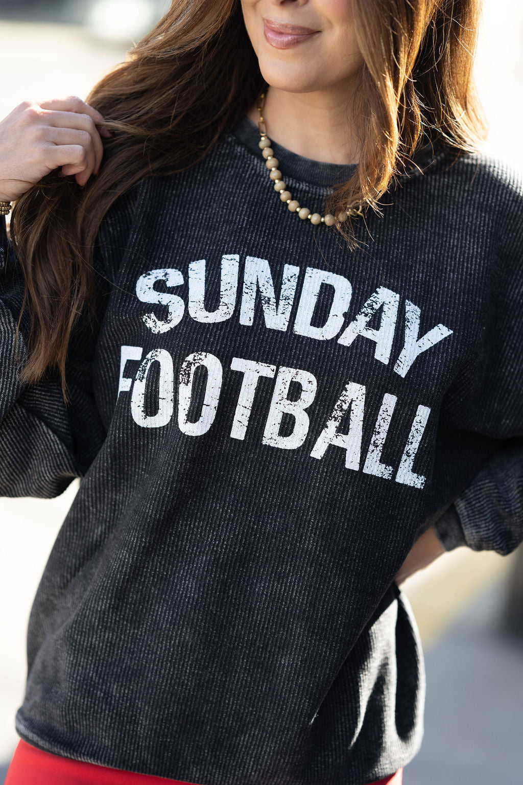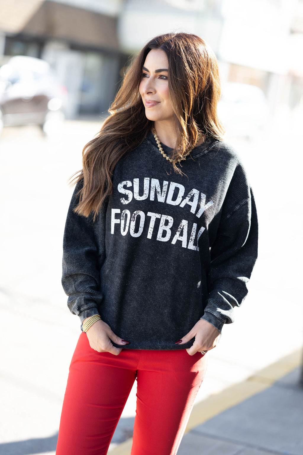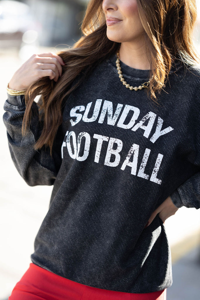 Kick back in comfort with this relaxed corded pullover made for every football fan. Its vintage-inspired lettering and soft, ribbed texture make it the ultimate weekend go-to — whether you’re tailgating, cheering from the couch, or just loving the laid-back vibe.