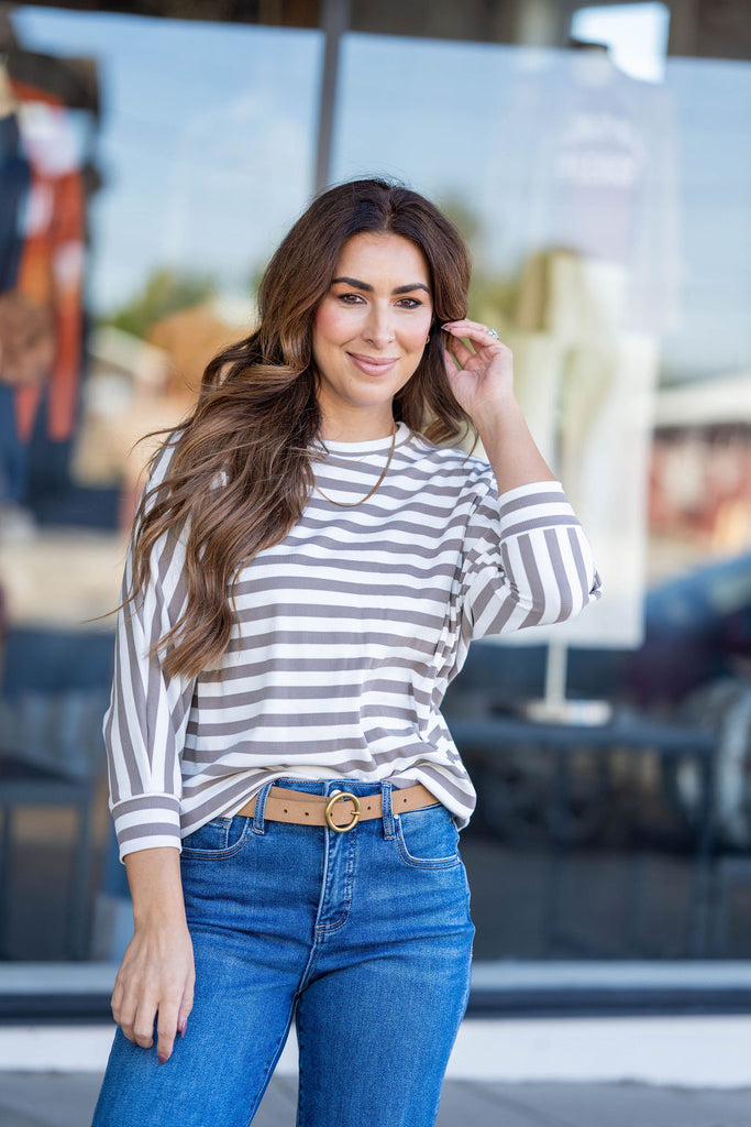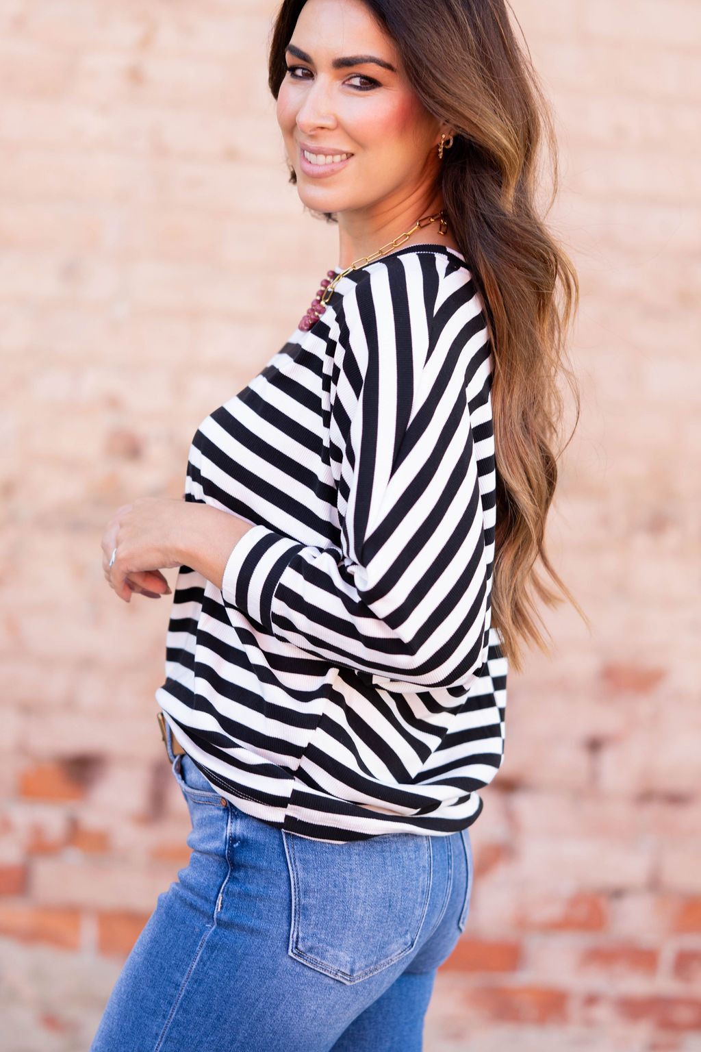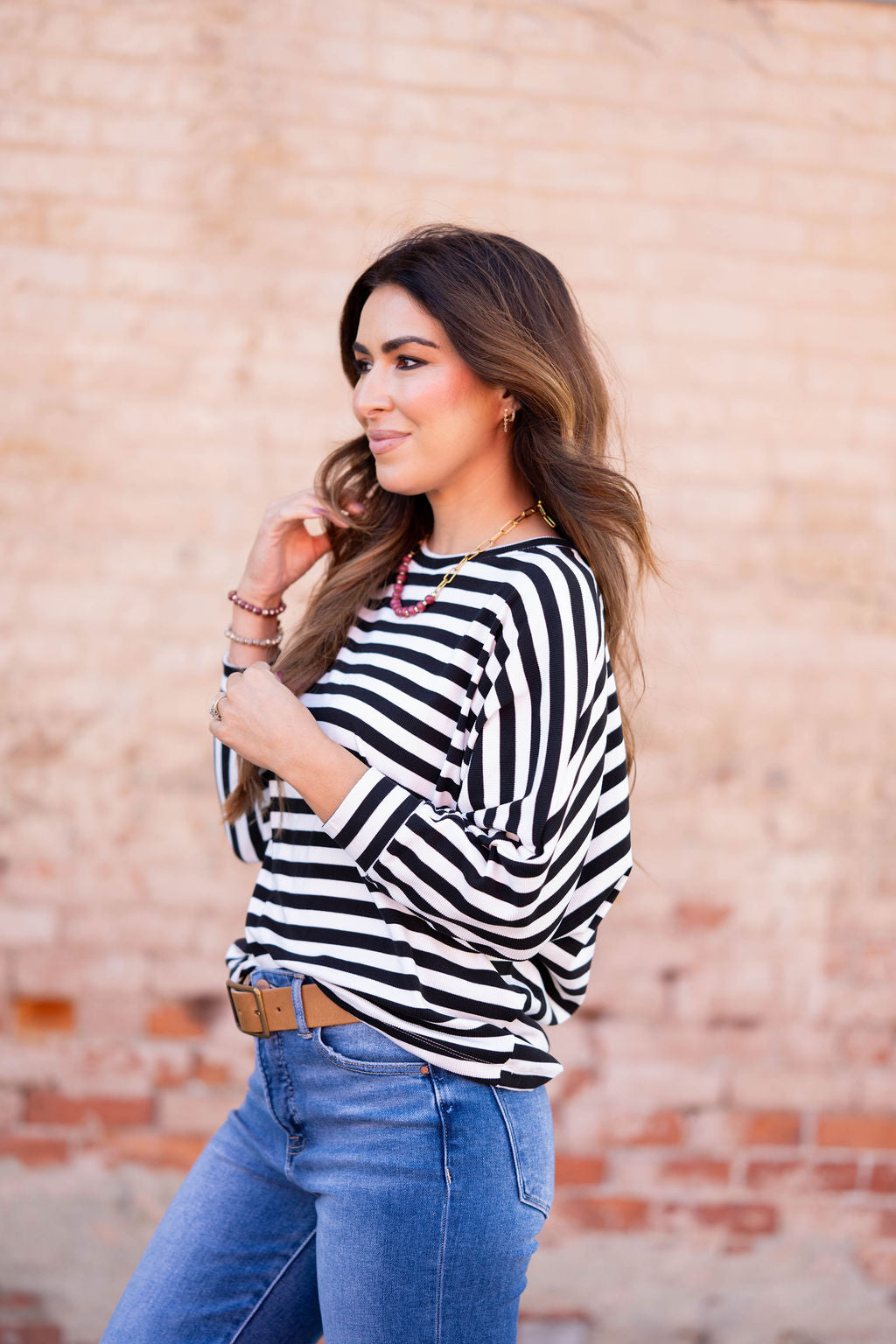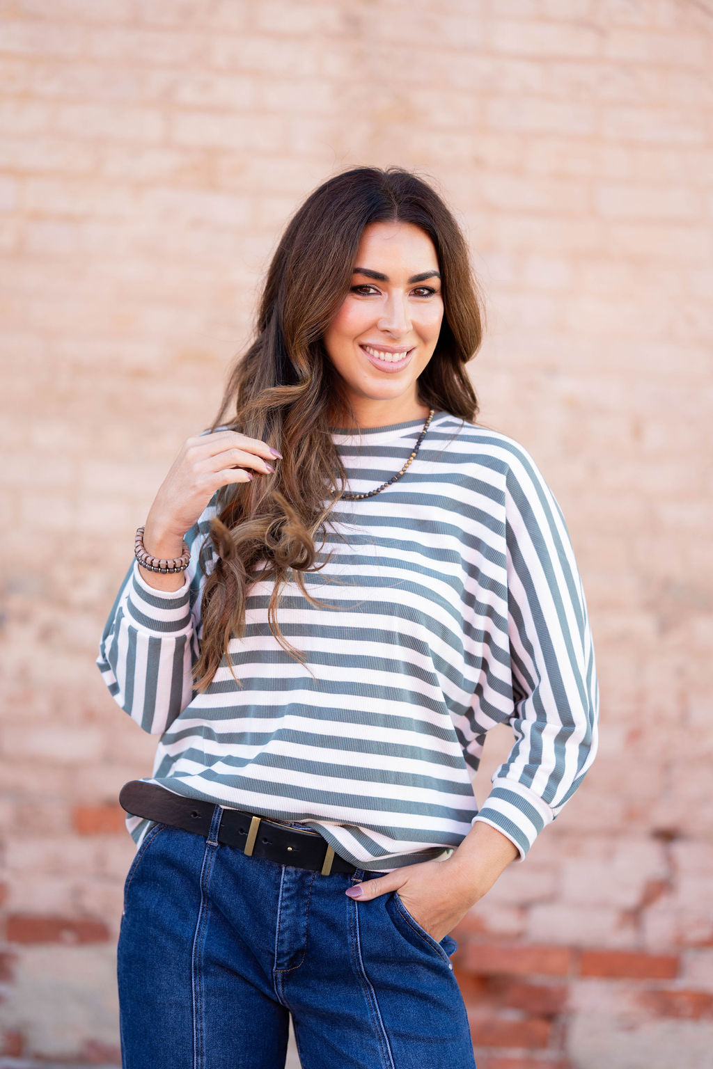 This striped long sleeve top is the perfect mix of casual and polished, offering a timeless pattern you can wear anywhere. With a relaxed fit and soft fabric, it’s made for easy everyday styling.