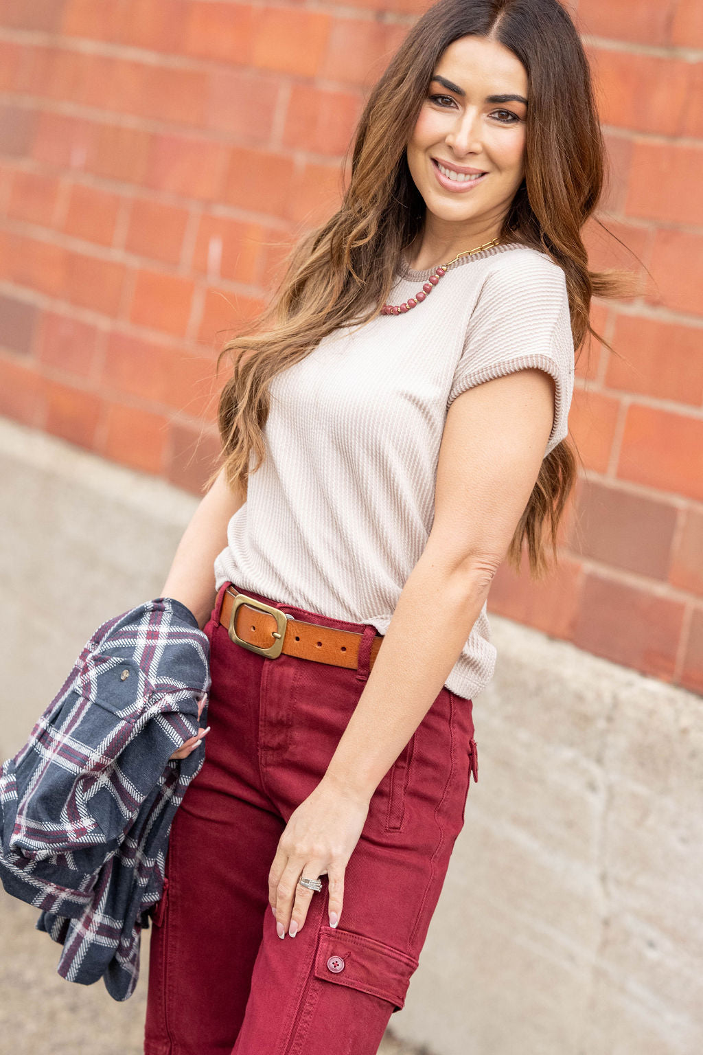 Soft, textured, and effortlessly versatile—this ribbed top is the perfect throw-on-and-go essential.