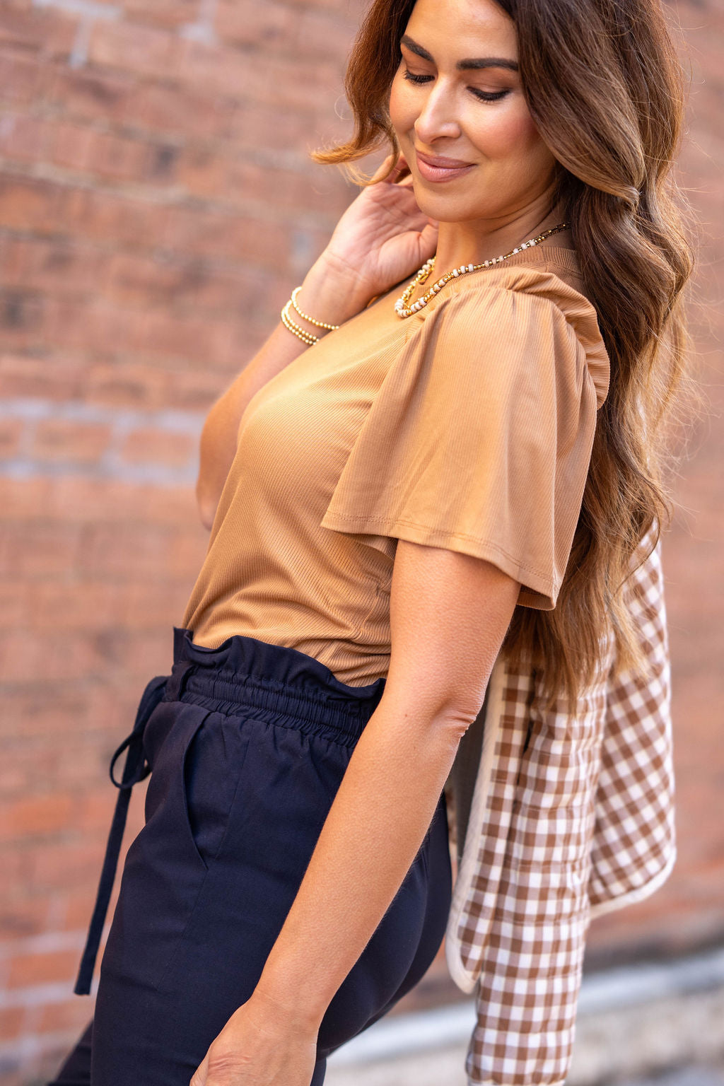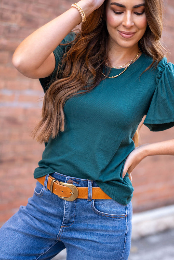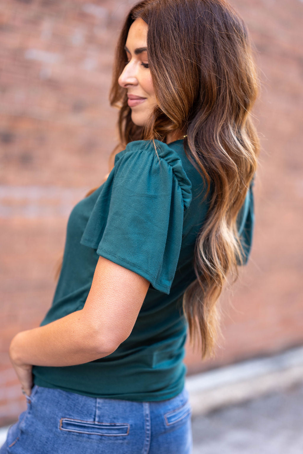Effortless and elevated, this short sleeve top adds a touch of feminine detail to your everyday look. With subtle ruffle shoulders and a soft, flattering fit, it’s the perfect balance of casual and chic.