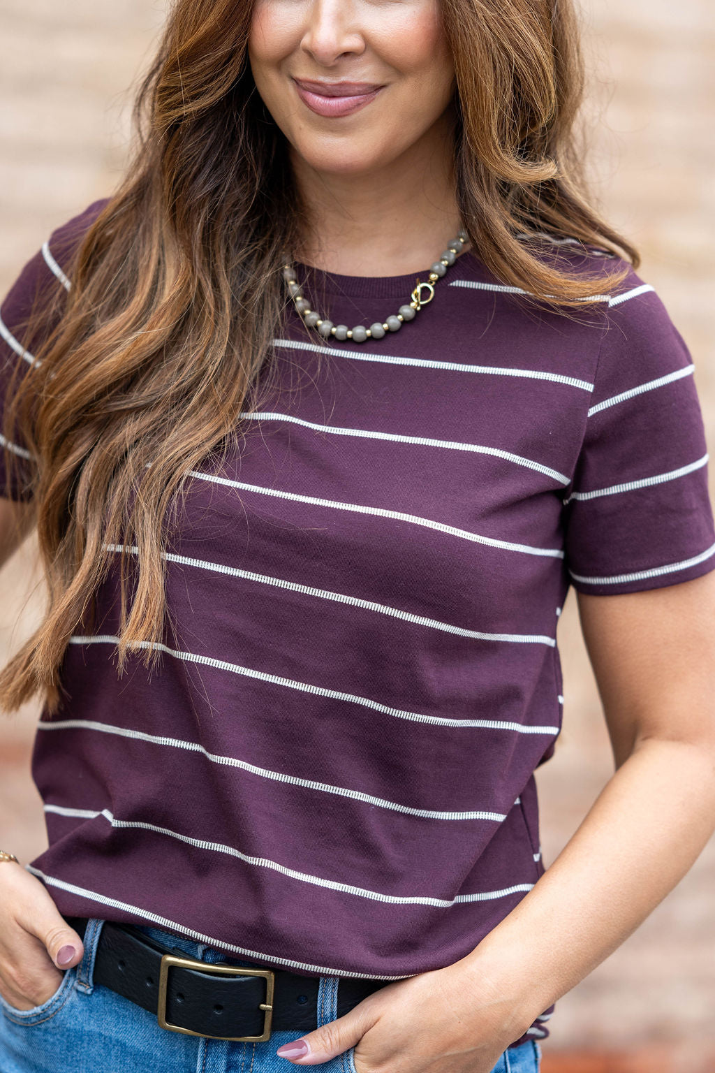 A timeless striped tee that blends casual comfort with classic style. Easy to mix and match, it’s the versatile piece your closet will thank you for.