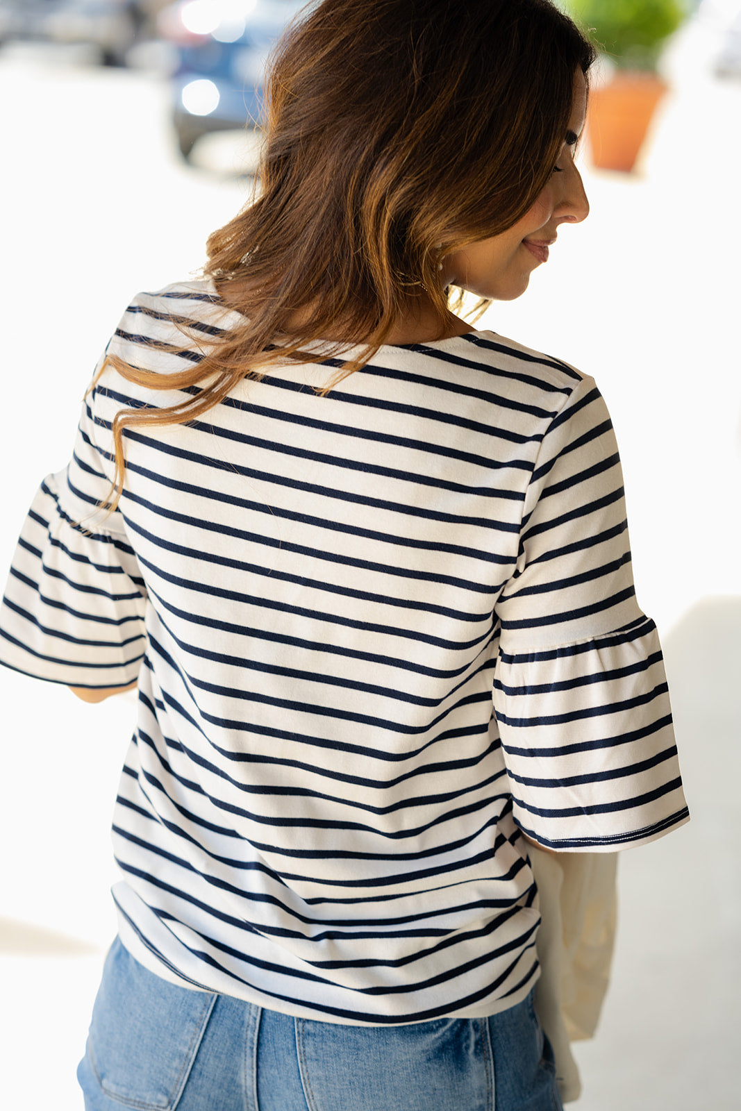 A soft and lightweight long-sleeve tee! The classic stripes are elevated with bell sleeves to set this apart from the rest! Pair with shorts or a skirt in the warmer months or your favorite denim, joggers, or our Betsey's Jeggings in the cooler ones! Just add your favorite accessories to tie the whole look together!