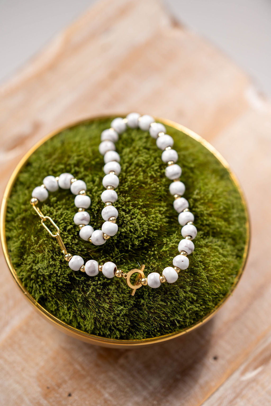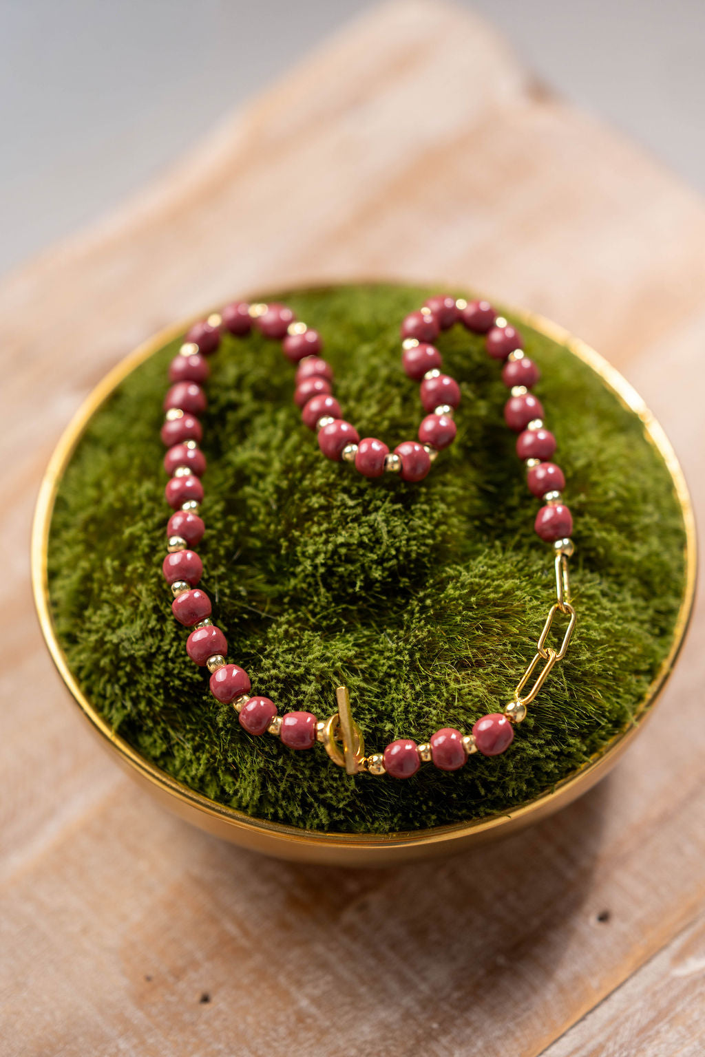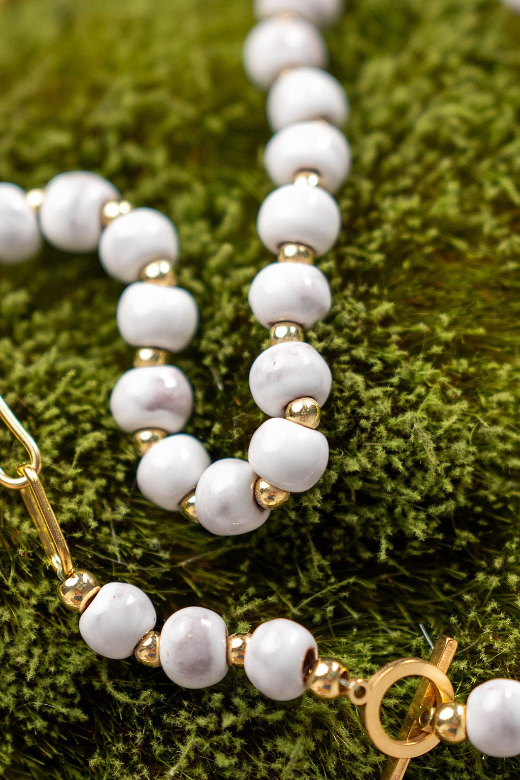 Similar to the top selling Bel Koz Single Strand Clay Necklace with added gold chain accents and a fun toggle clasp! We love that this can be used for everyday wear and dressed up or down to fit your style! We suggest pairing with a Bel Koz Clay Bracelet for a complete look!