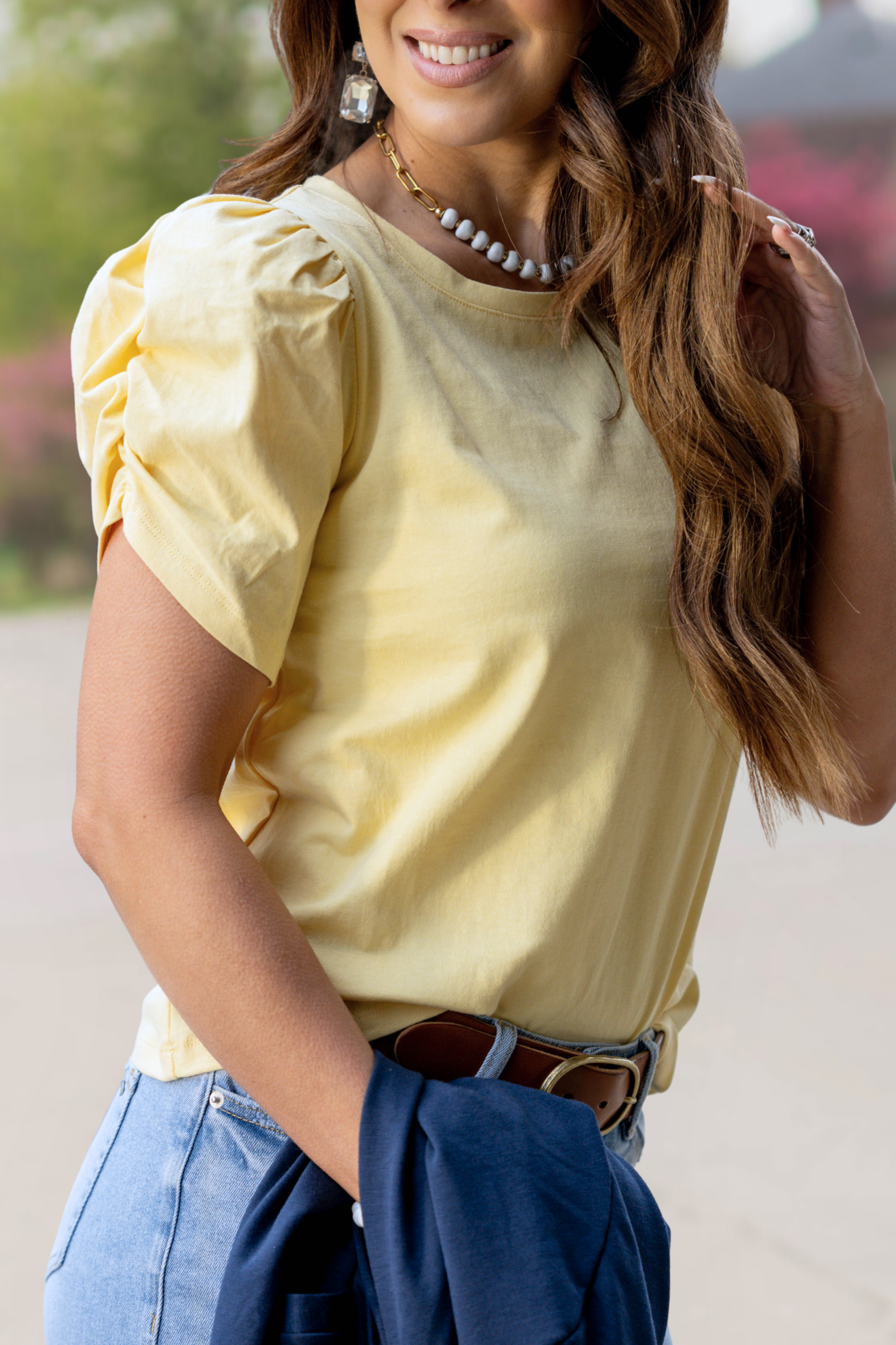 A feminine twist on your favorite everyday tee. This puff-sleeve beauty adds instant polish while keeping things effortlessly comfortable.