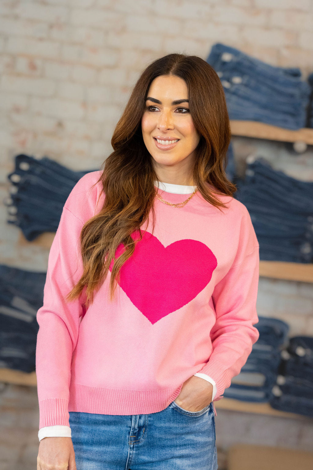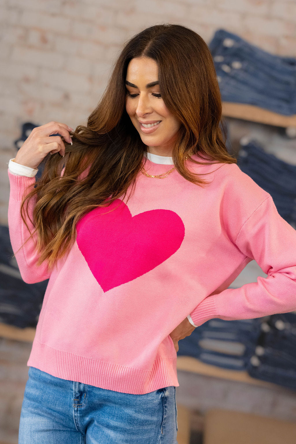 Make a statement without sacrificing comfort. This sweater pairs a soft knit feel with a bold heart design for an effortlessly cute look.