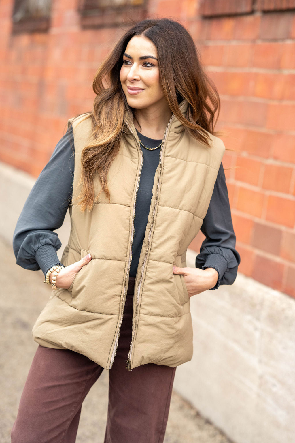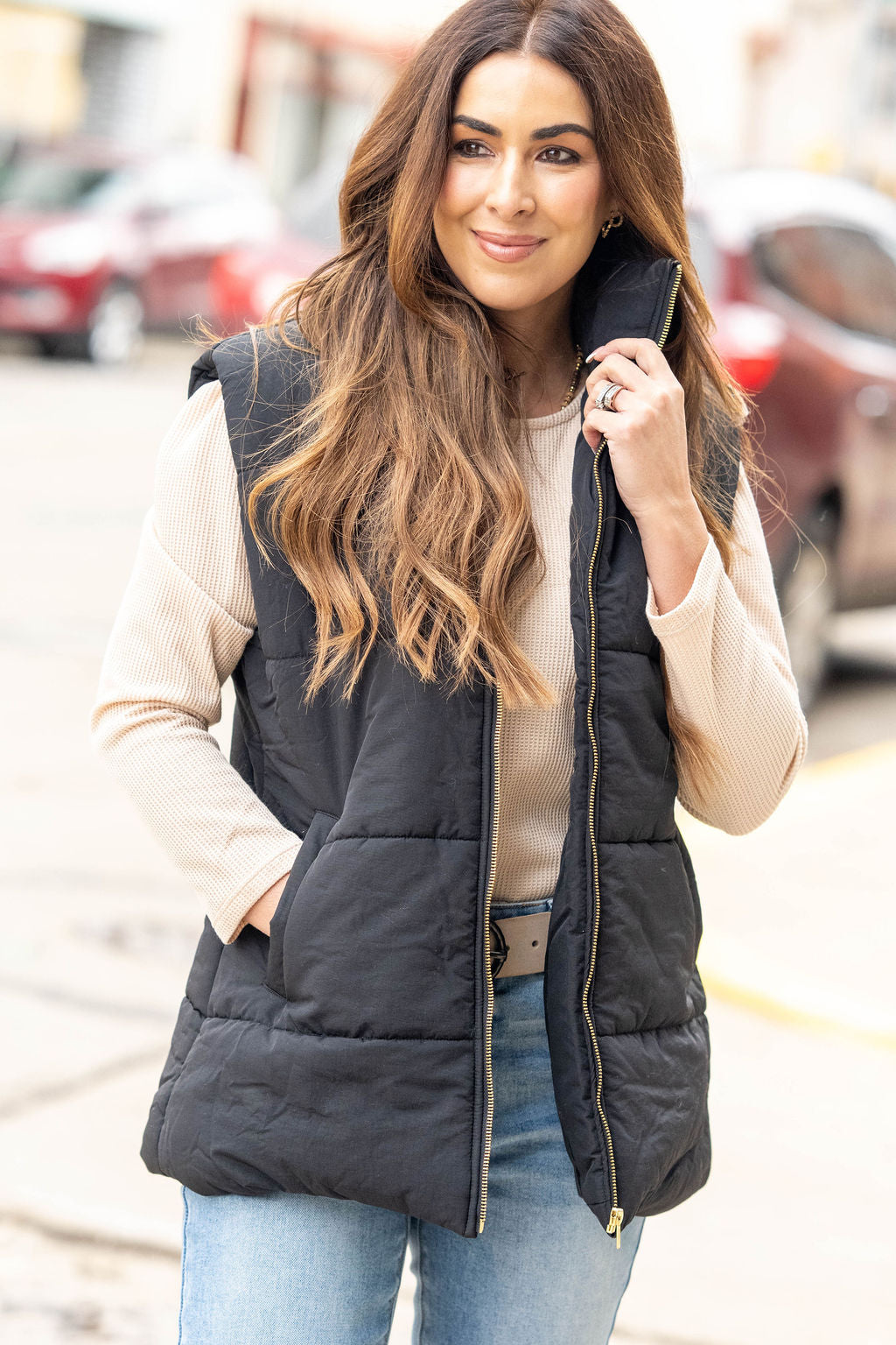 The perfect finishing layer for cooler days. This lightweight quilted puffer vest features a flattering, easy fit that’s made for effortless layering. Designed with a zip-front closure and functional pockets, it adds warmth without the bulk.