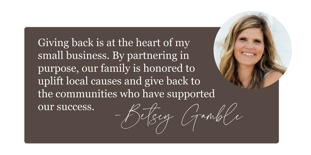 - Betsey’s tracks eligible sales and allocates 20% to your cause