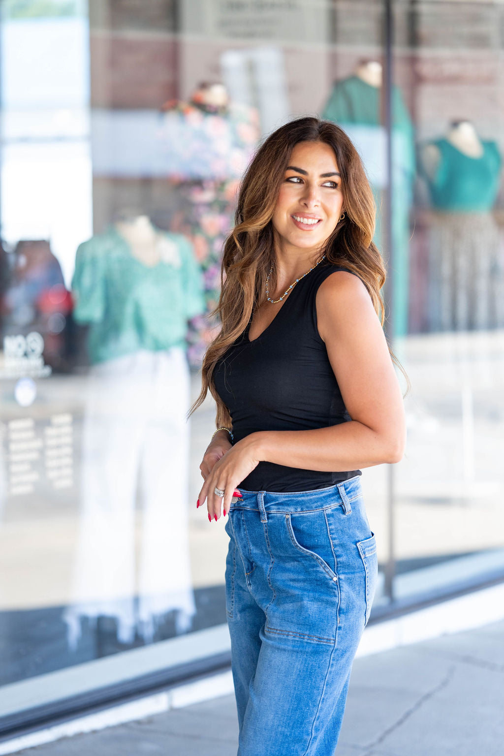 A simple soft and lightweight tank that will surely be a stapple piece in your wardrobe! Wear this alone with shorts or a skirt in the warmer months or use this as a layering piece with your cardigans or shackets in the cooler ones! This is also the perfect piece for the gym or on-the-go too!