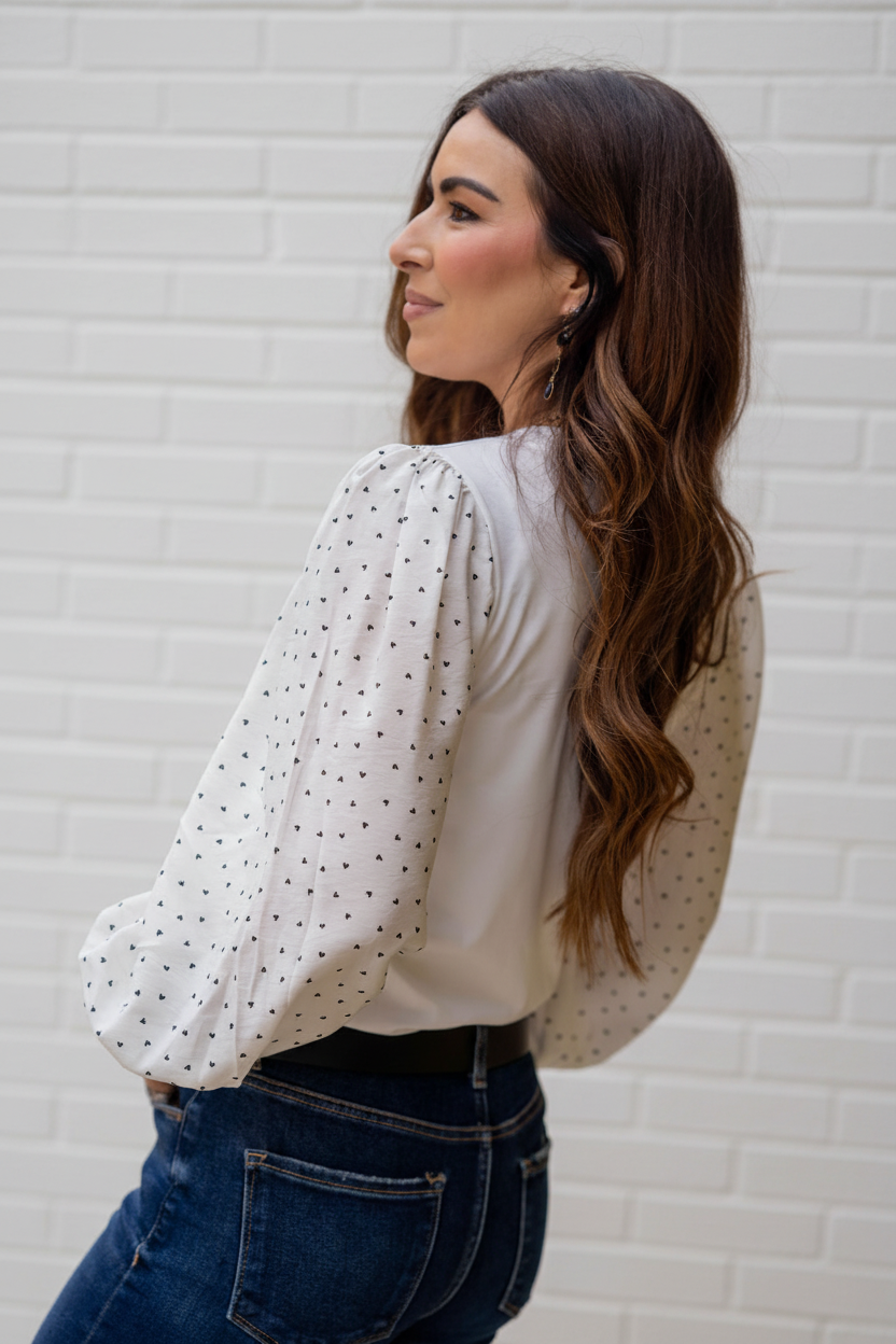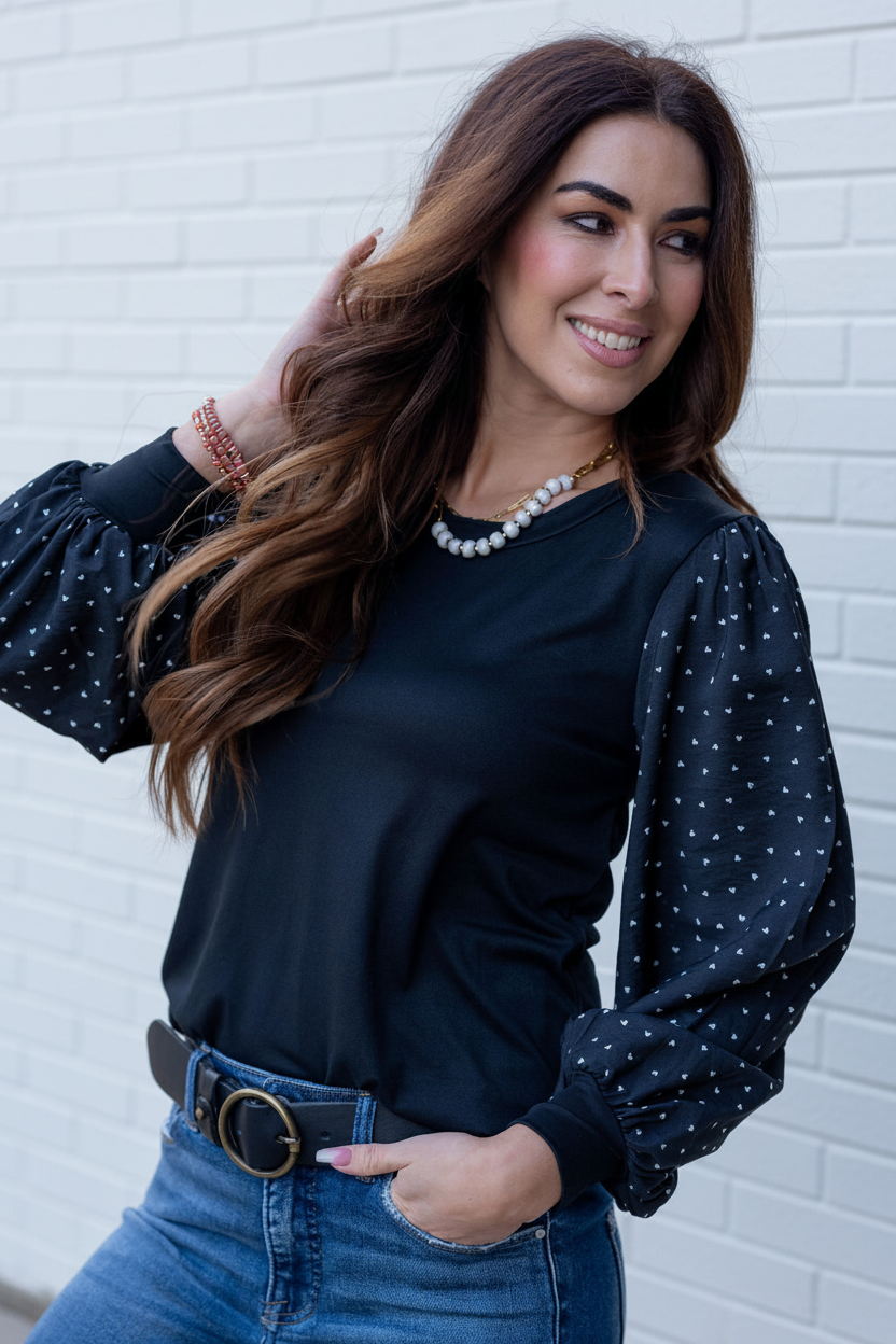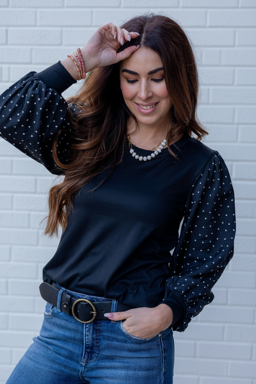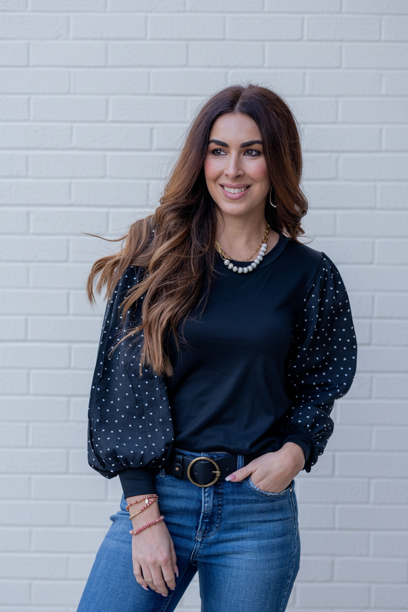This top is made to stand out in the sweetest way. Designed with statement puff sleeves and delicate heart detailing, it brings the perfect mix of playful charm and everyday wearability. Easy to style with denim or dress up for a night out, it’s a piece you’ll fall in love with instantly.