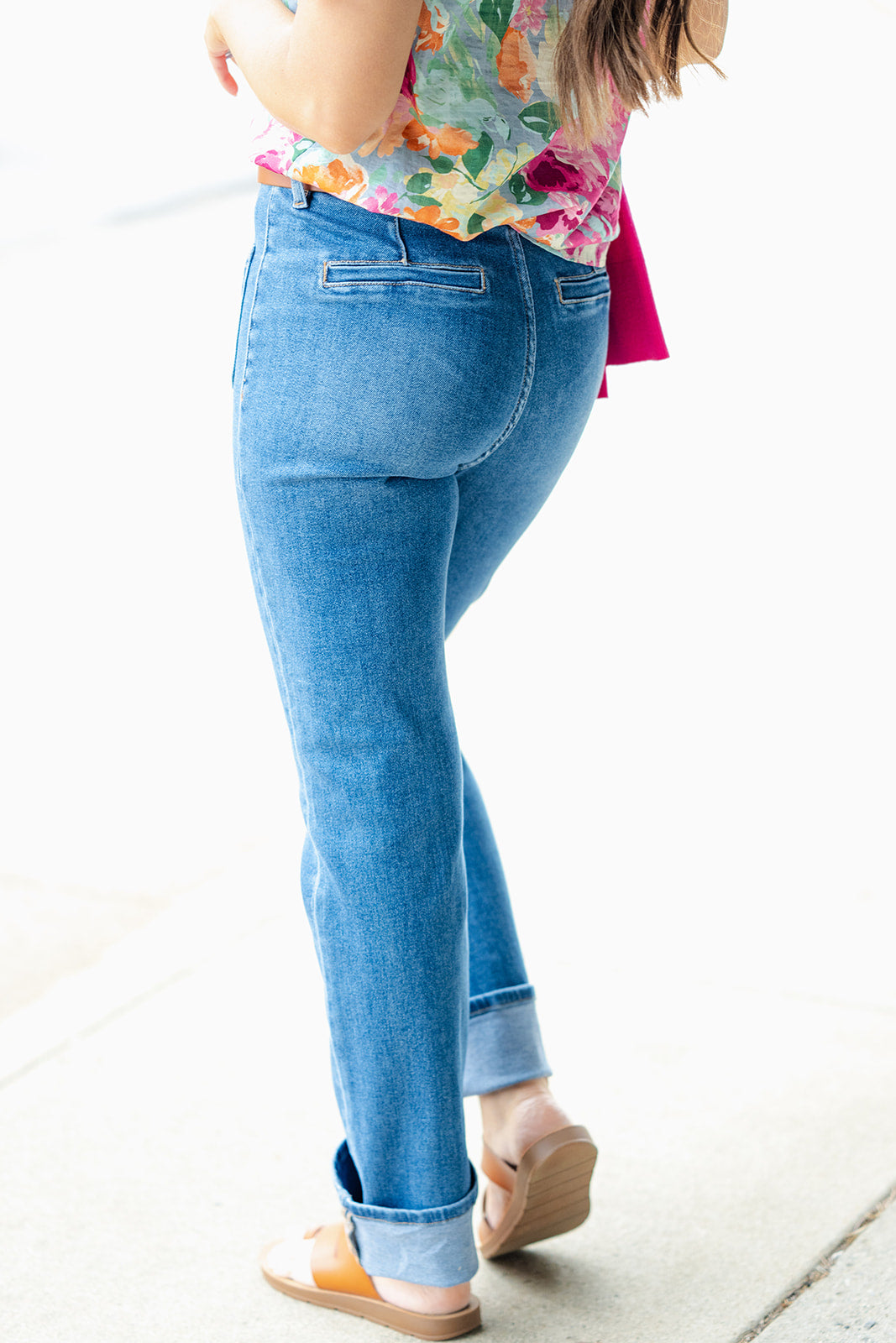 These high-rise jeans feature a slim straight leg and ankle cuffed detailing! The front patch pocket give these that extra bit of character to set them apart from the rest! Dress these up or down with ease for everyday wear!