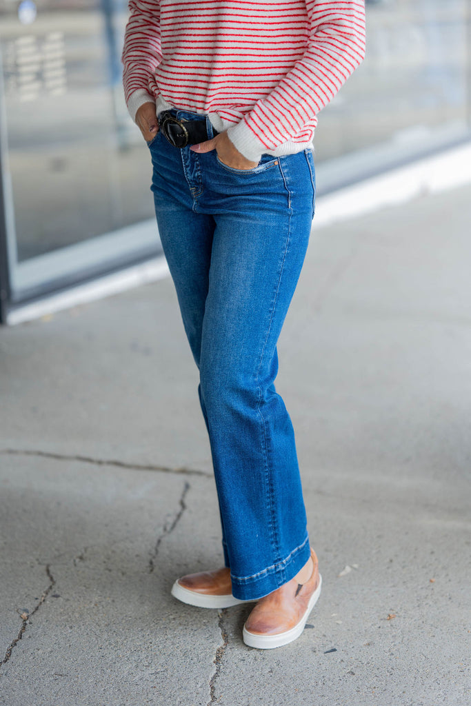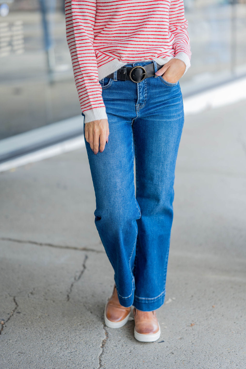 A closet staple, these straight leg jeans offer a sleek and timeless fit you can style countless ways. With just the right amount of stretch, they’re comfortable enough for all-day wear while keeping their shape.