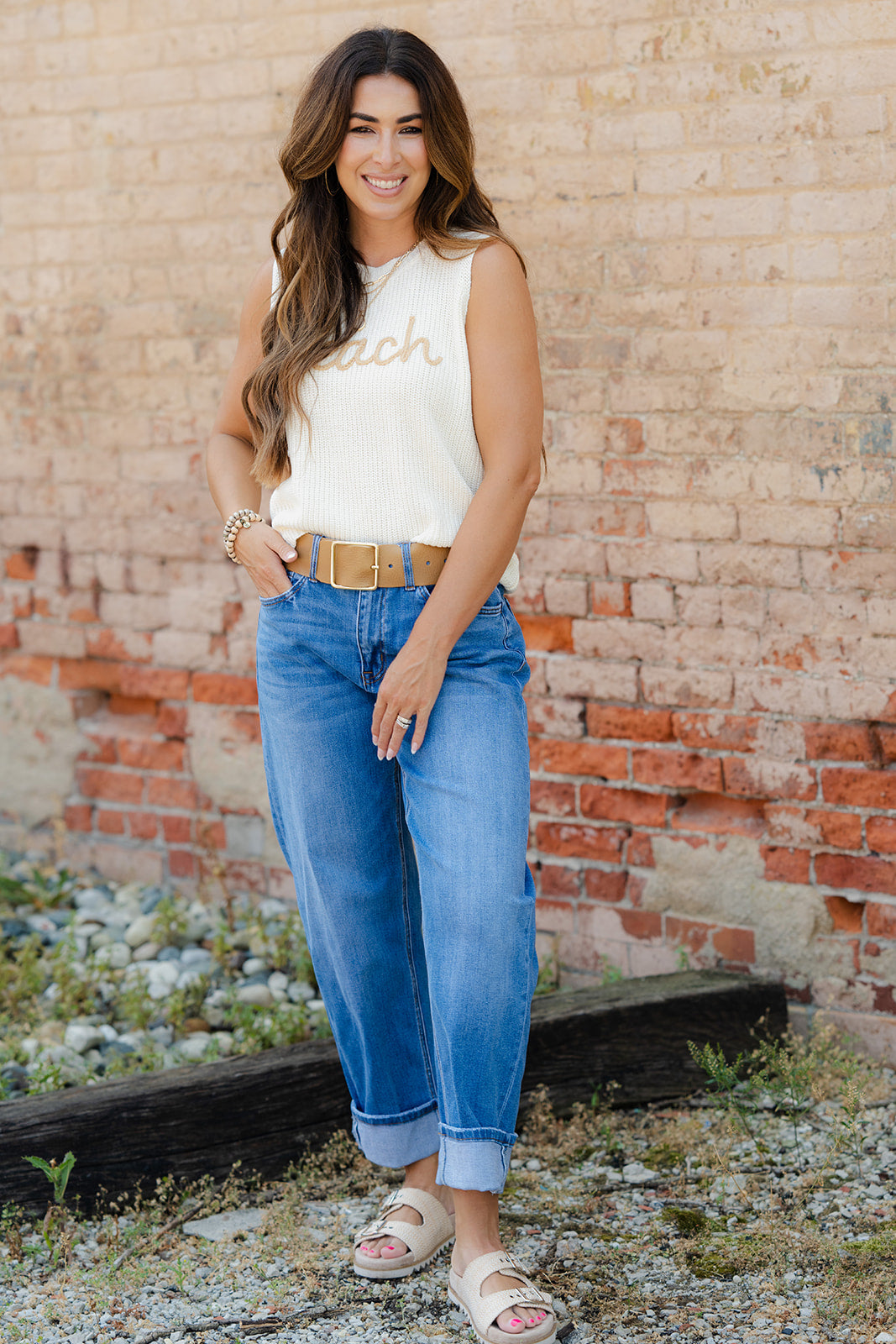 Knit tops aren’t just for the cooler months! This tank can easily be paired with shorts or a skirt for the warmer ones too! We love this for vacations, barbecues, or any of your summer time events!