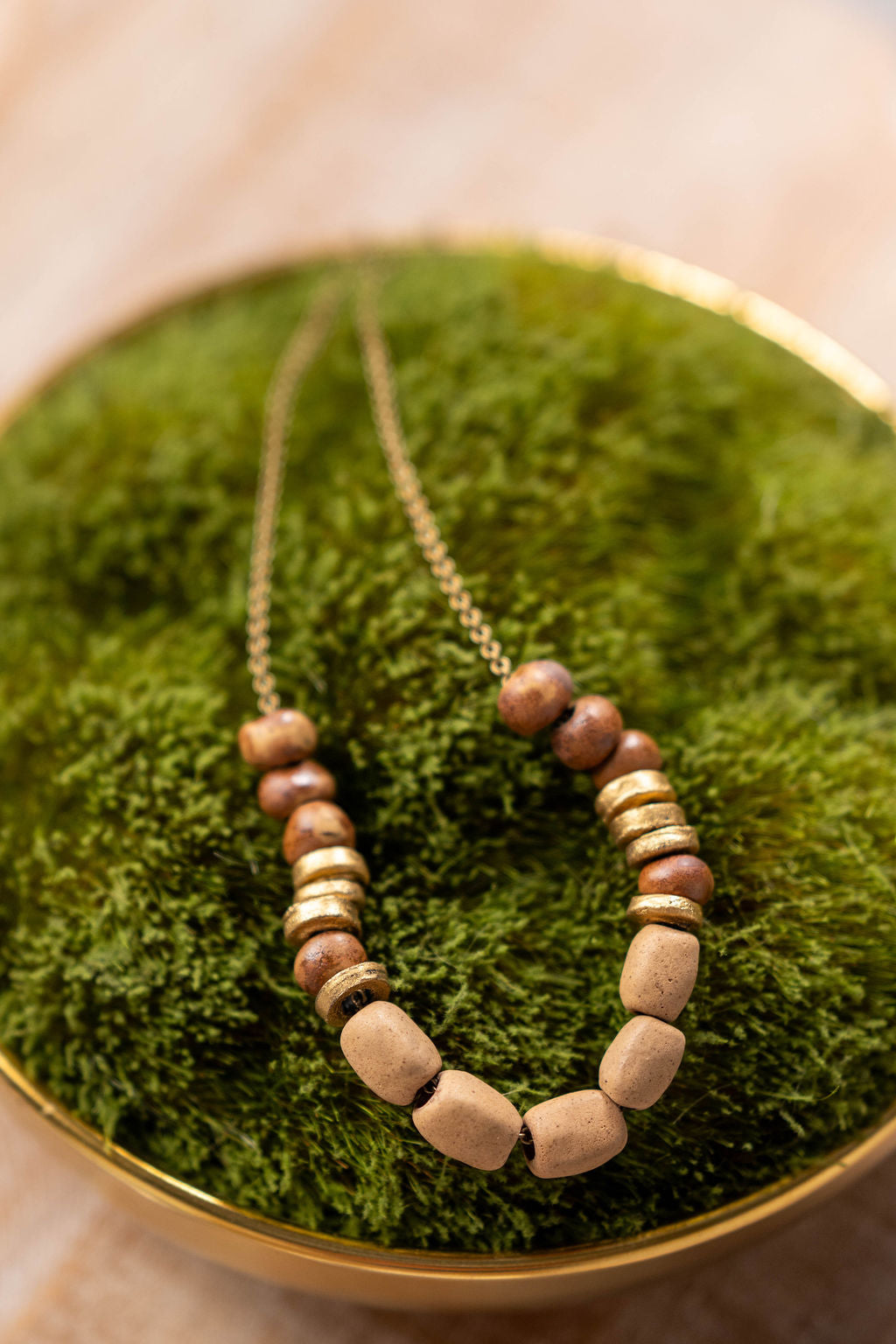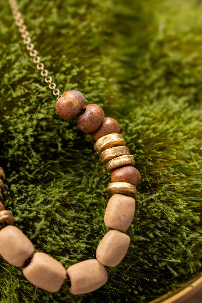 Dress up your outfit with our Bel Koz necklace with an assortment of beads to set it apart from the rest! This unique necklace is handmade from clay beads by talented Haitian women. A portion of Bel Koz sales also goes to nonprofit organizations on the grounds in Haiti. Look stylish while also supporting a great cause!