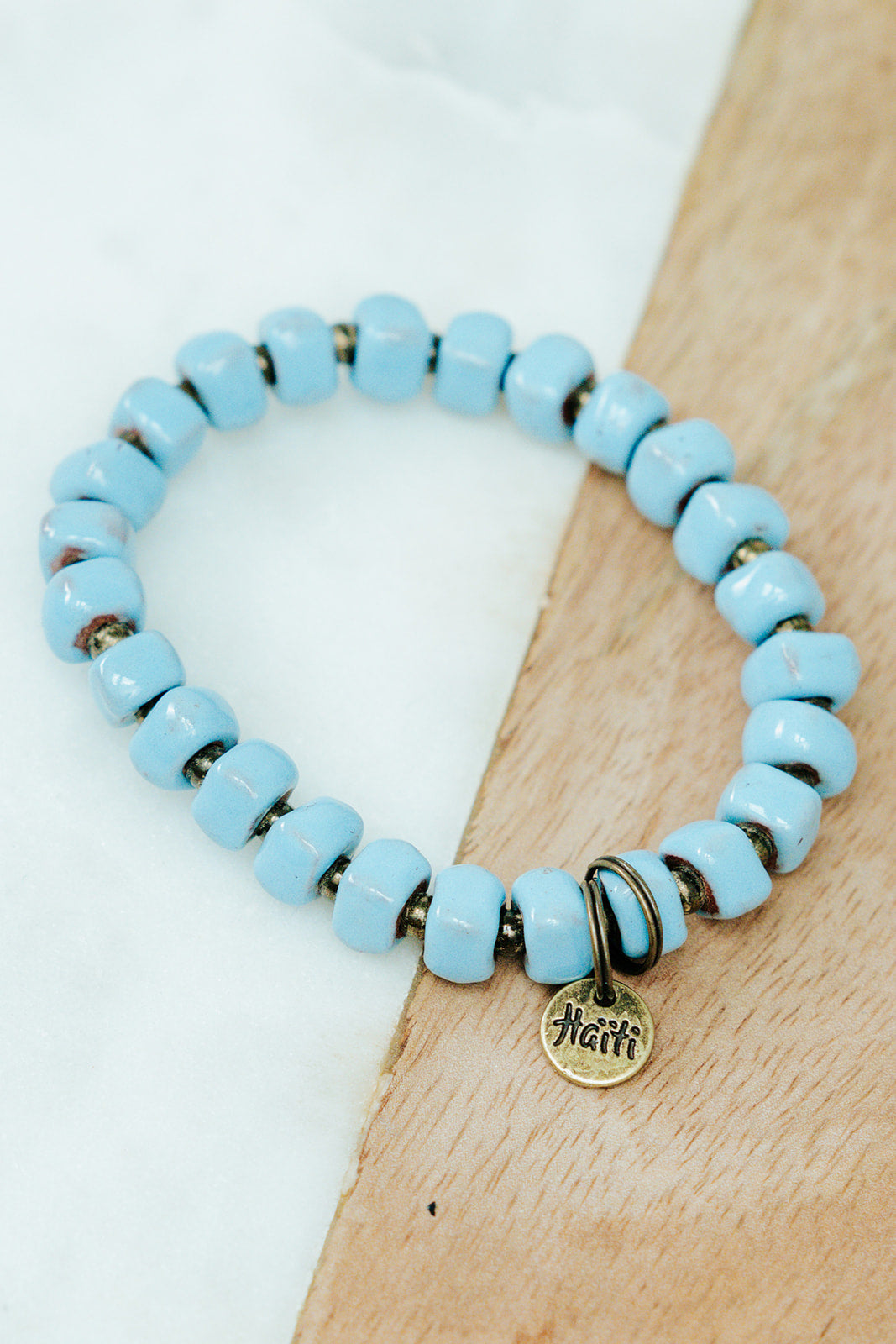 Handmade clay beaded bracelets that are the perfect addition to any outfit that can either be worn alone, or stacked to be the statement piece of your look.