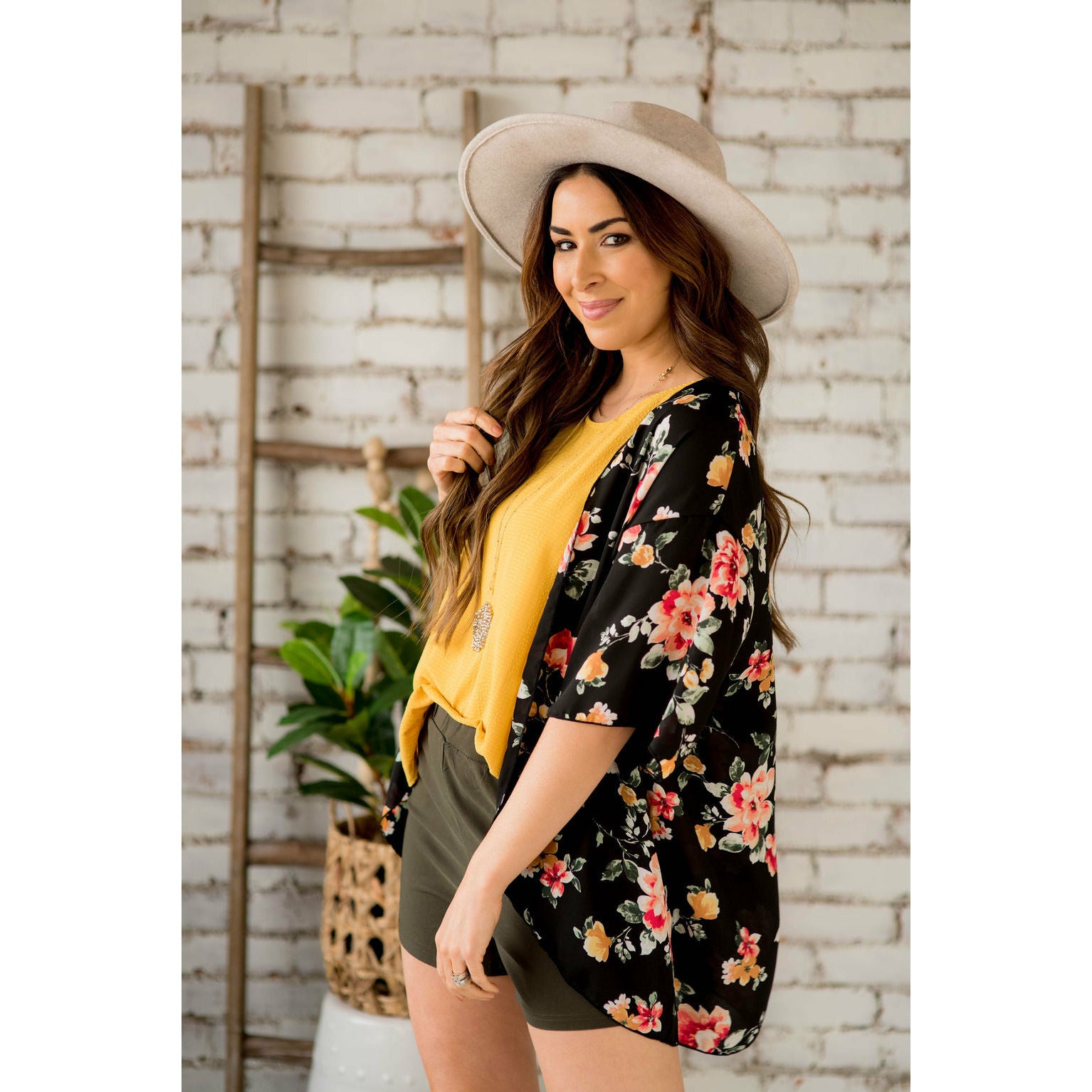 Kimonos are such a lightweight and easy option to tie even the simplest of outfits together! We love pairing this with a simple tank dress, or even with a basic tank and a bold colored pair of Betsey’s Jeggings for a head turning look!