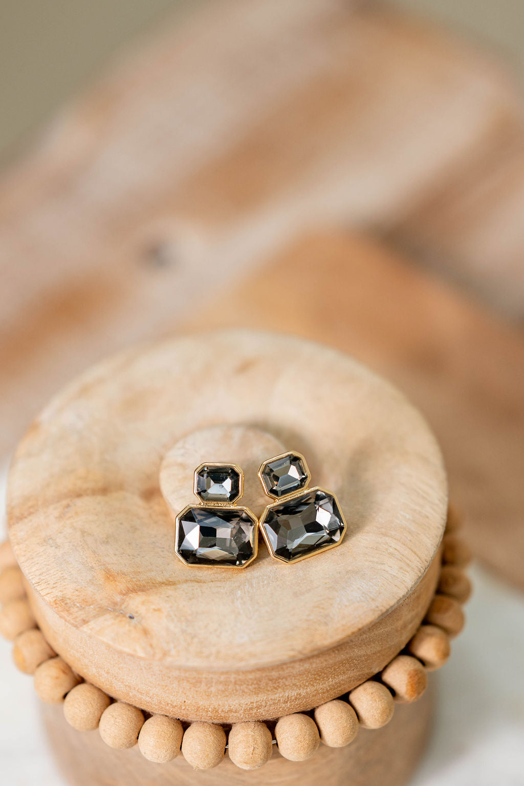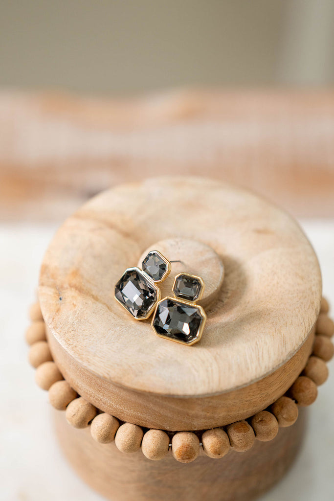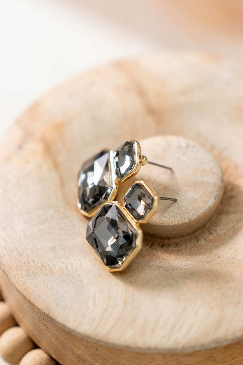 Striking and sophisticated. These multi-stone earrings feature faceted smoky-black crystals set in gold frames, creating depth and dimension that instantly elevate any outfit. Bold enough for an evening statement yet versatile enough for chic daytime style, they’re the ultimate power pair.