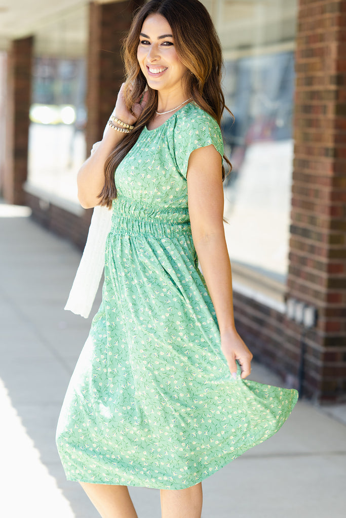 Blossoms Cinched Waist Midi Dress