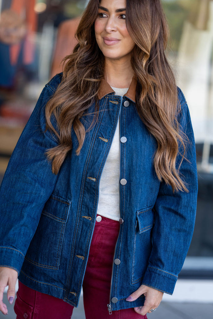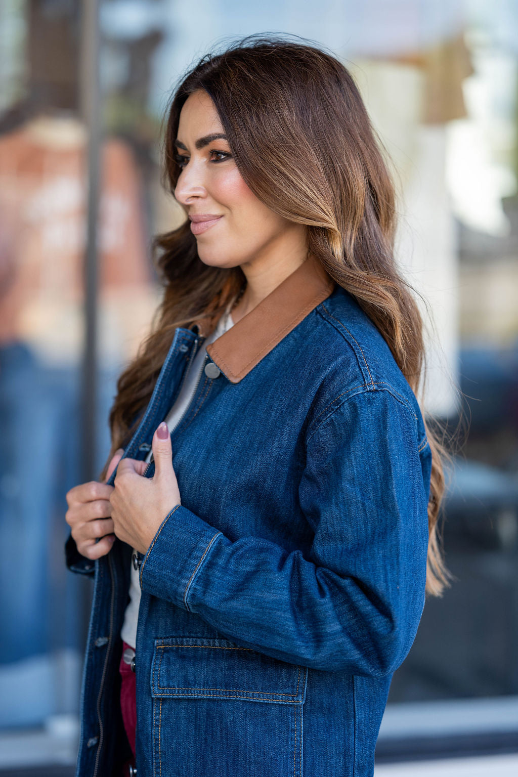 A timeless denim jacket with a modern twist, this layer is the perfect piece to throw on over any outfit. Designed with a structured fit and contrast collar, it’s as versatile as it is stylish.