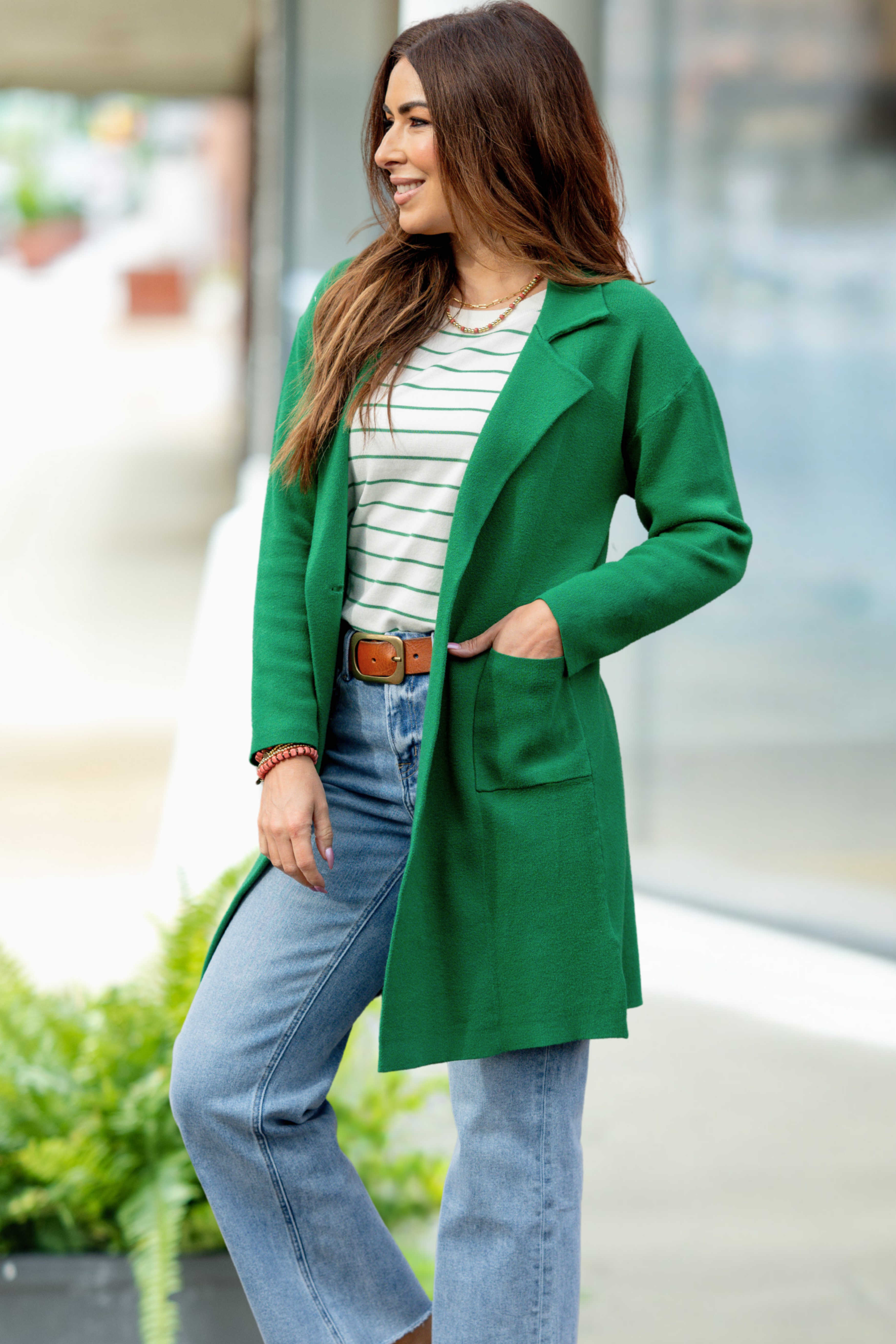 Make a statement without sacrificing comfort. This longline cardigan is designed with a clean, polished shape and an easy open front that works for everyday wear or dressed-up moments. The bold hue adds instant personality to any outfit.