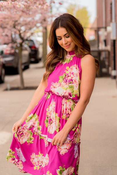 This fun and feminine floral tank dress has a cinched neck and waist and a flowy bottom to fit any and every body shape or size! Pair this with sandals in the warmer months or add a cardigan or denim jacket and booties in the cooler ones! We love that this can be styled for a more elevated occasion or worn casually for an everyday look!