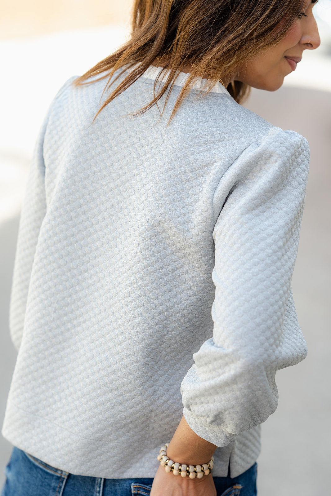 Sweatshirts don’t have to be boring! The bold texture makes the bow accents really pop and the 3/4 sleeves give this a chic vibe! Pair with a fun skirt, your favorite denim, some joggers, or some bold-colored Betsey’s Jeggings! Chilly? Add a vest or shacket with ease! This can be dressed up or down for everyday wear.