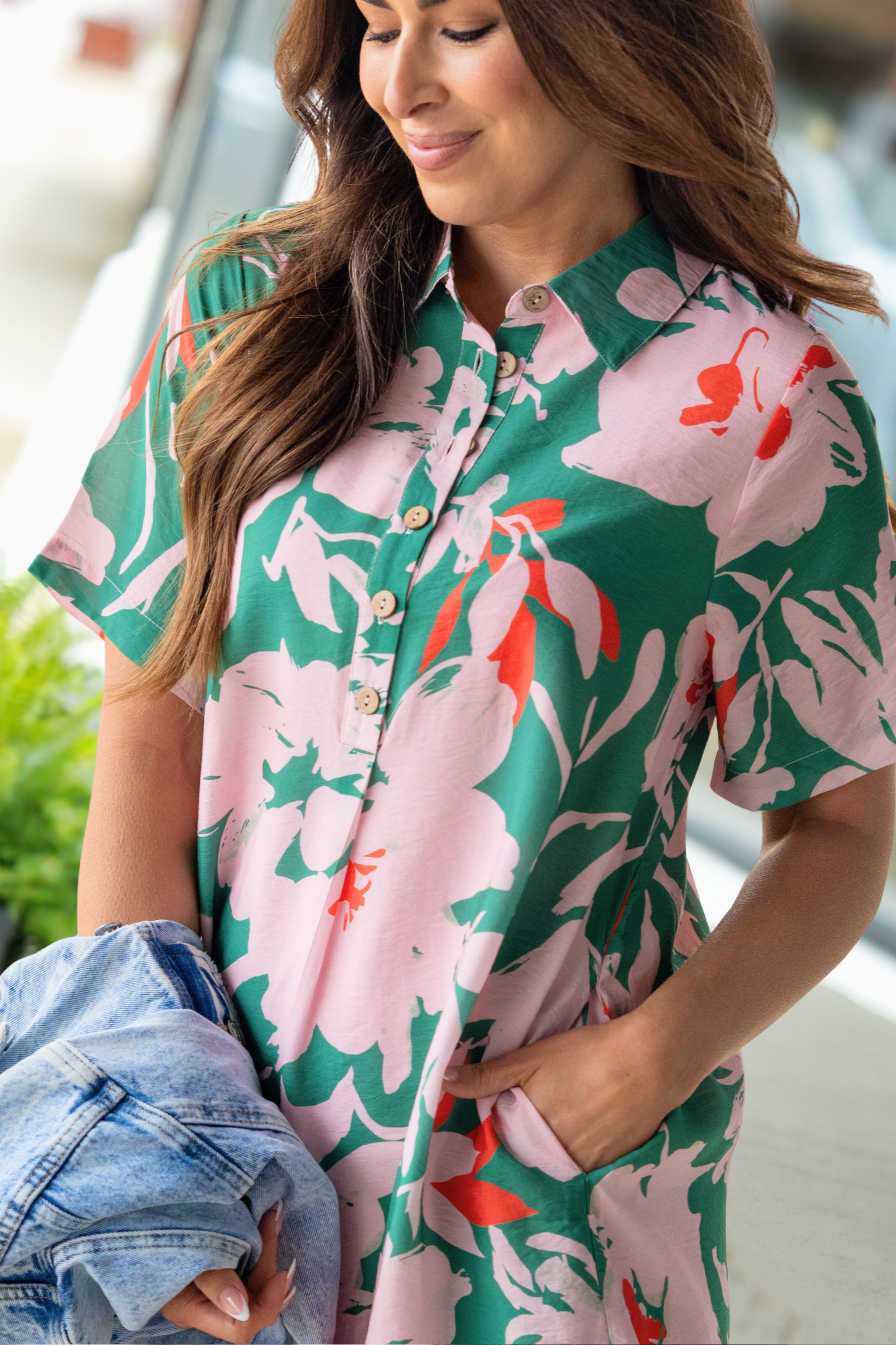 Bold, bright, and beautifully effortless — this floral dress is your go-to for sunny days ahead. The playful pop-art floral print gives it a standout feel, while the relaxed shift silhouette keeps it cool, comfy, and easy to wear.
