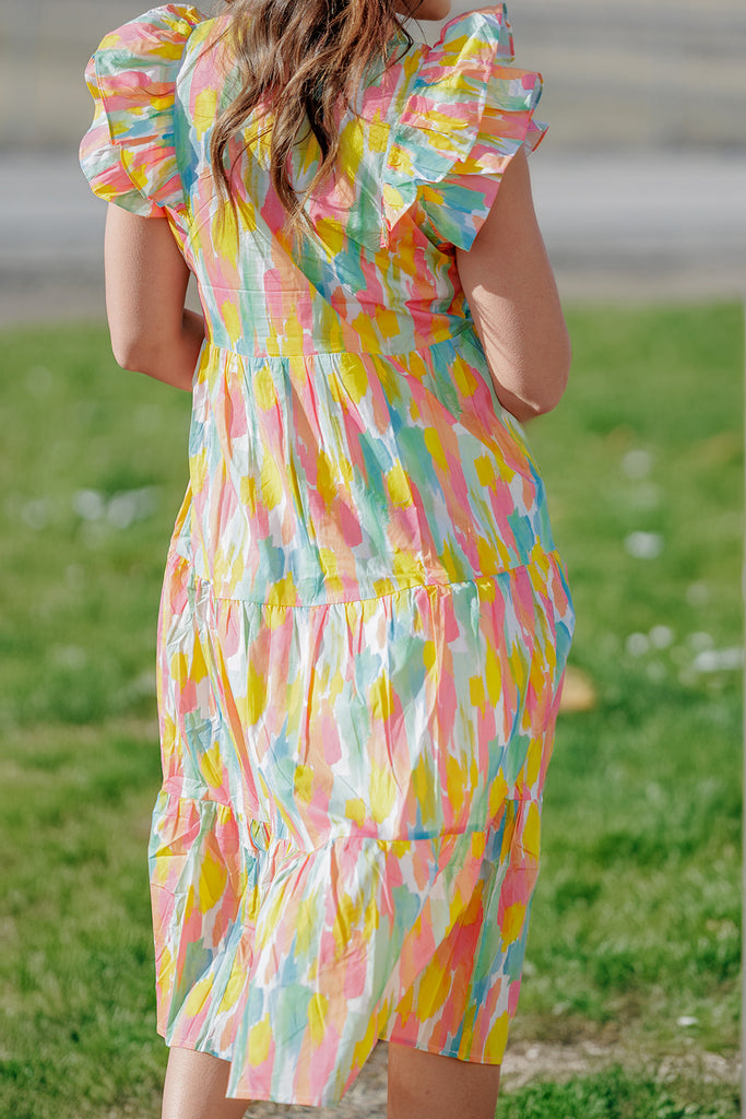 Brush Stroke Tiered Midi Dress