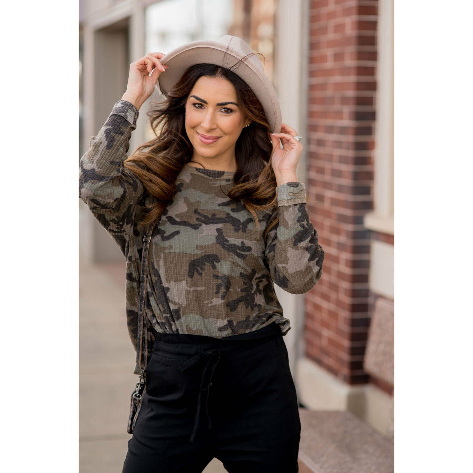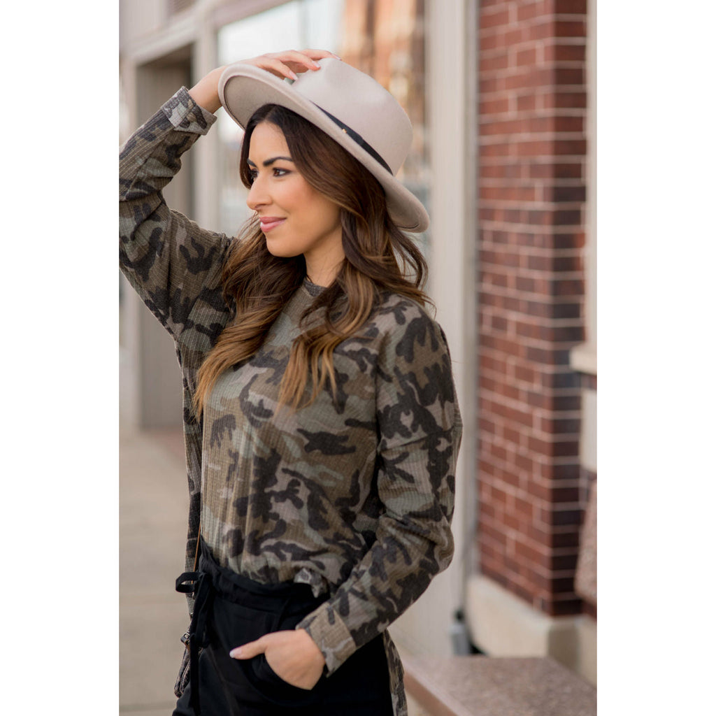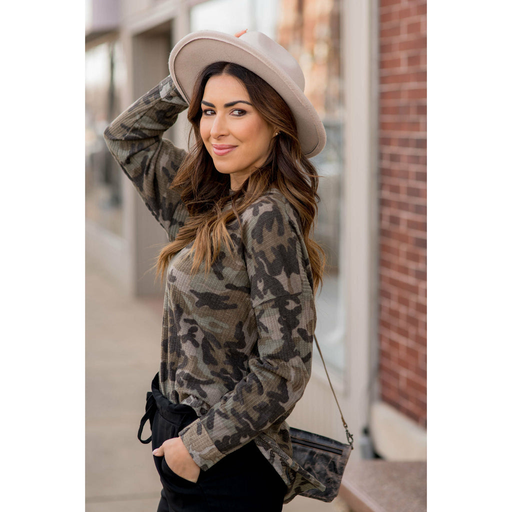 Camo is one of the biggest fashion trends! We love the simplicity of this tee. Pair with jeans, pants, cardigan or a jacket!