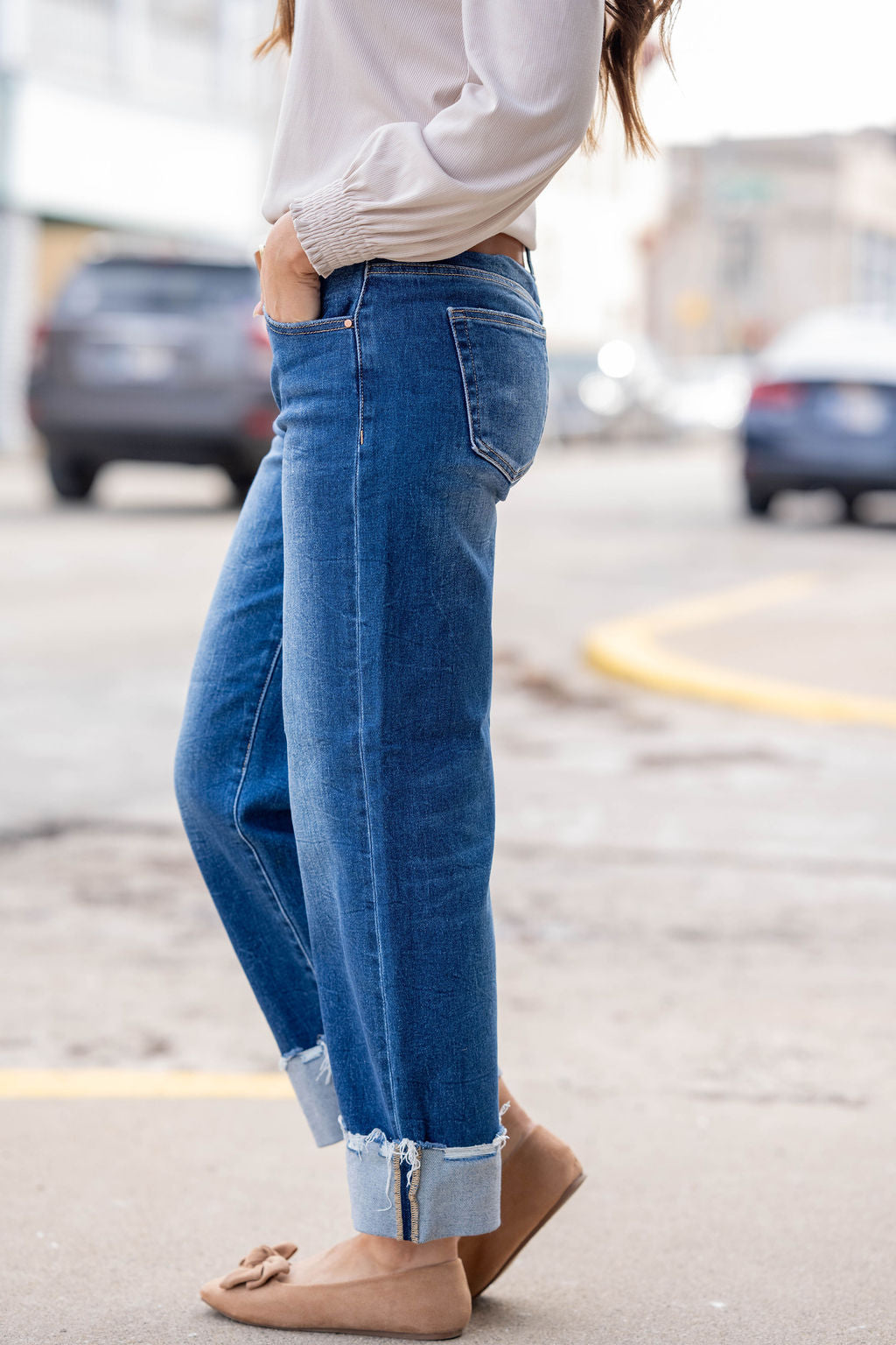These jeans bring an effortless mix of modern style and everyday comfort. Designed with a relaxed straight leg and finished with a wide cuffed hem, they deliver a laid-back, trend-forward look that stands out without trying too hard.