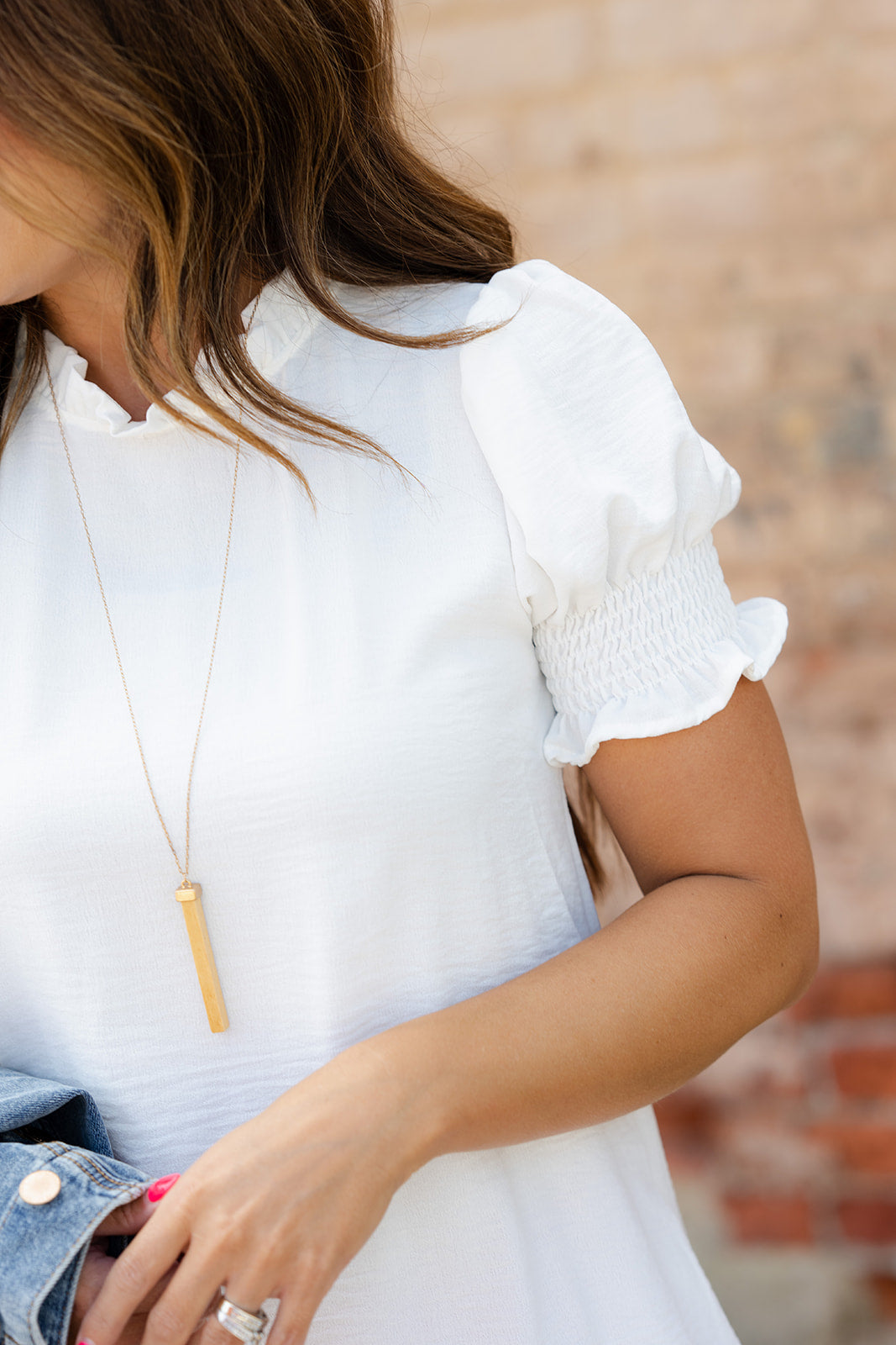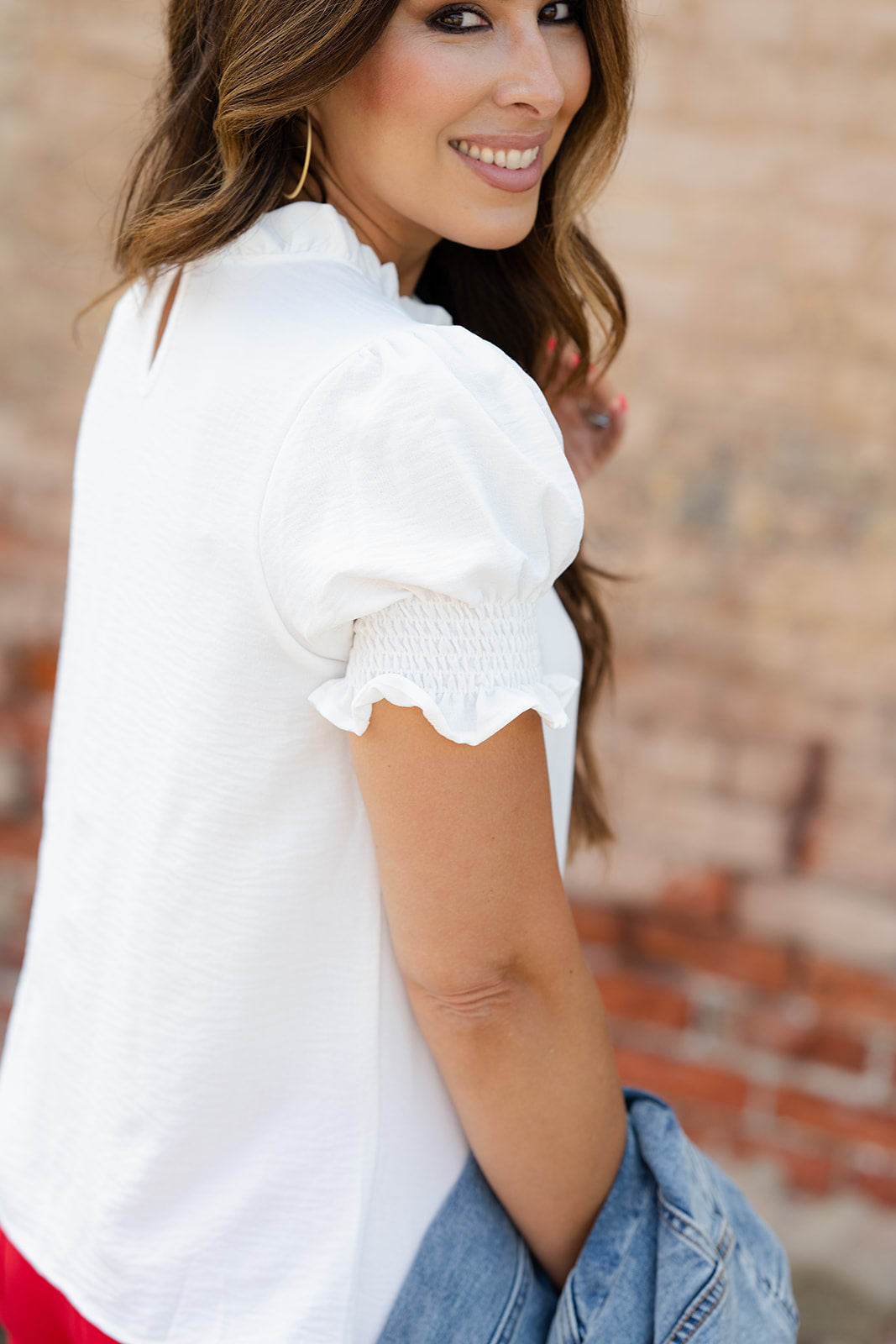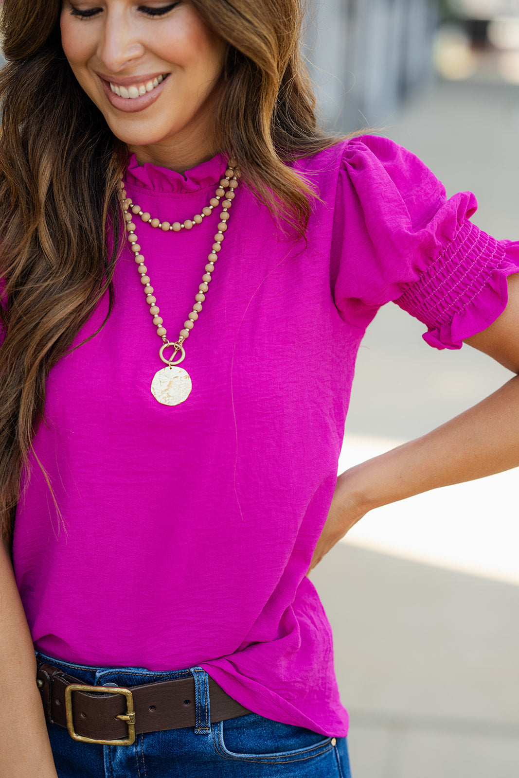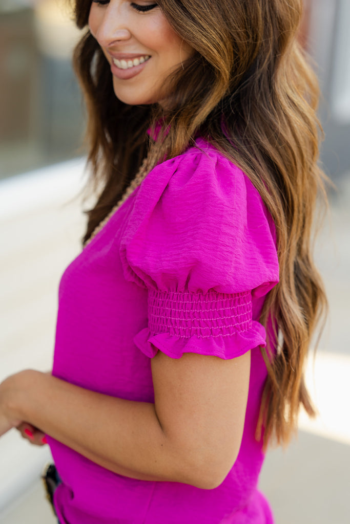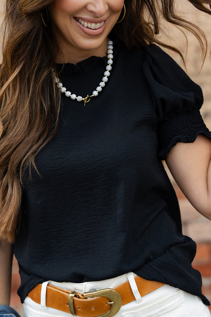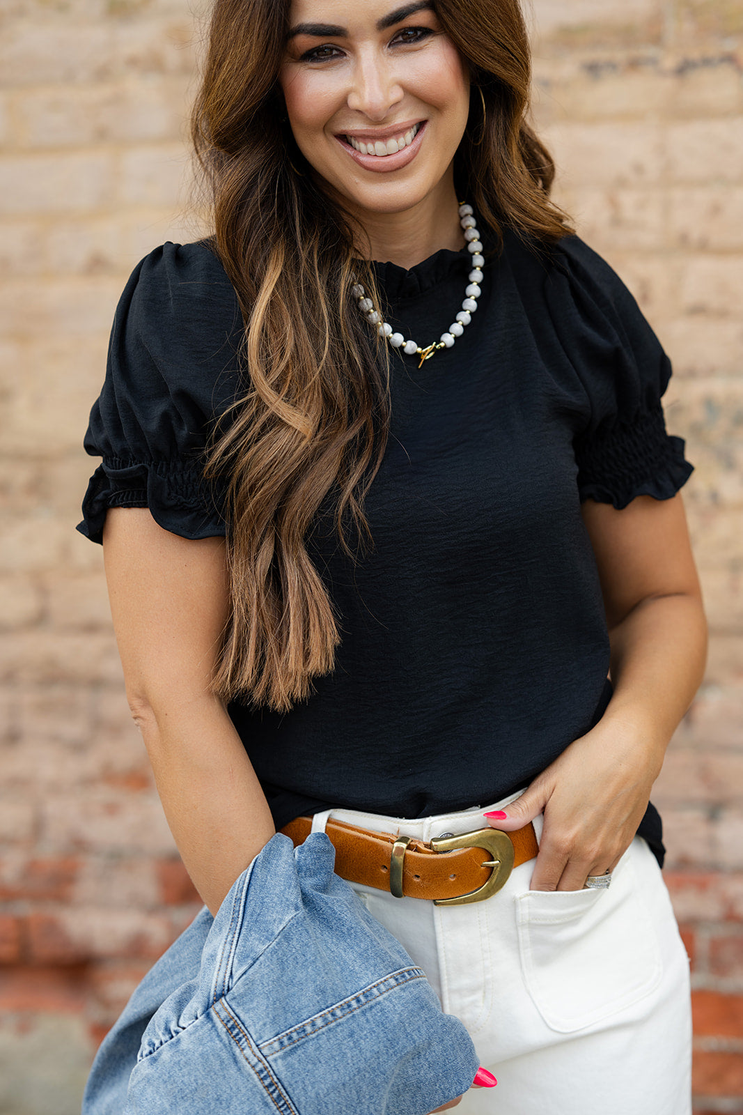 The fun puff sleeves really set this blouse apart from the rest! Pair with shorts or a skirt in the warmer months or with denim or our Betsey's Jeggings in the cooler ones! Don't forget your favorite accessories for a complete Betsey's look! The simplicity of this allows you to dress it up or down with ease, making it ideal for everyday wear!