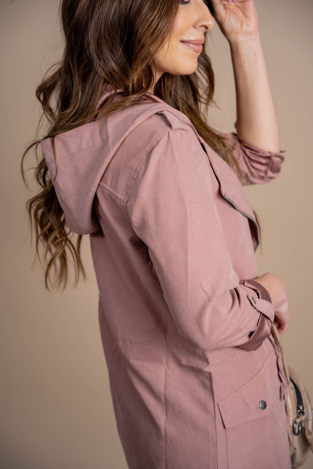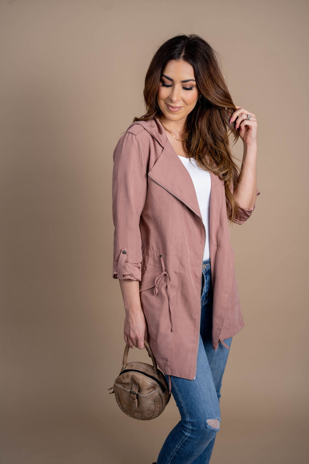 The perfect jacket for everyday wear! This can be dressed up or down with ease and is lightweight enough for going into the warmer months but can be layered for extra warmth for the cooler ones! The hood and pockets make this super functional and the tie waist gives off a slimming effect!