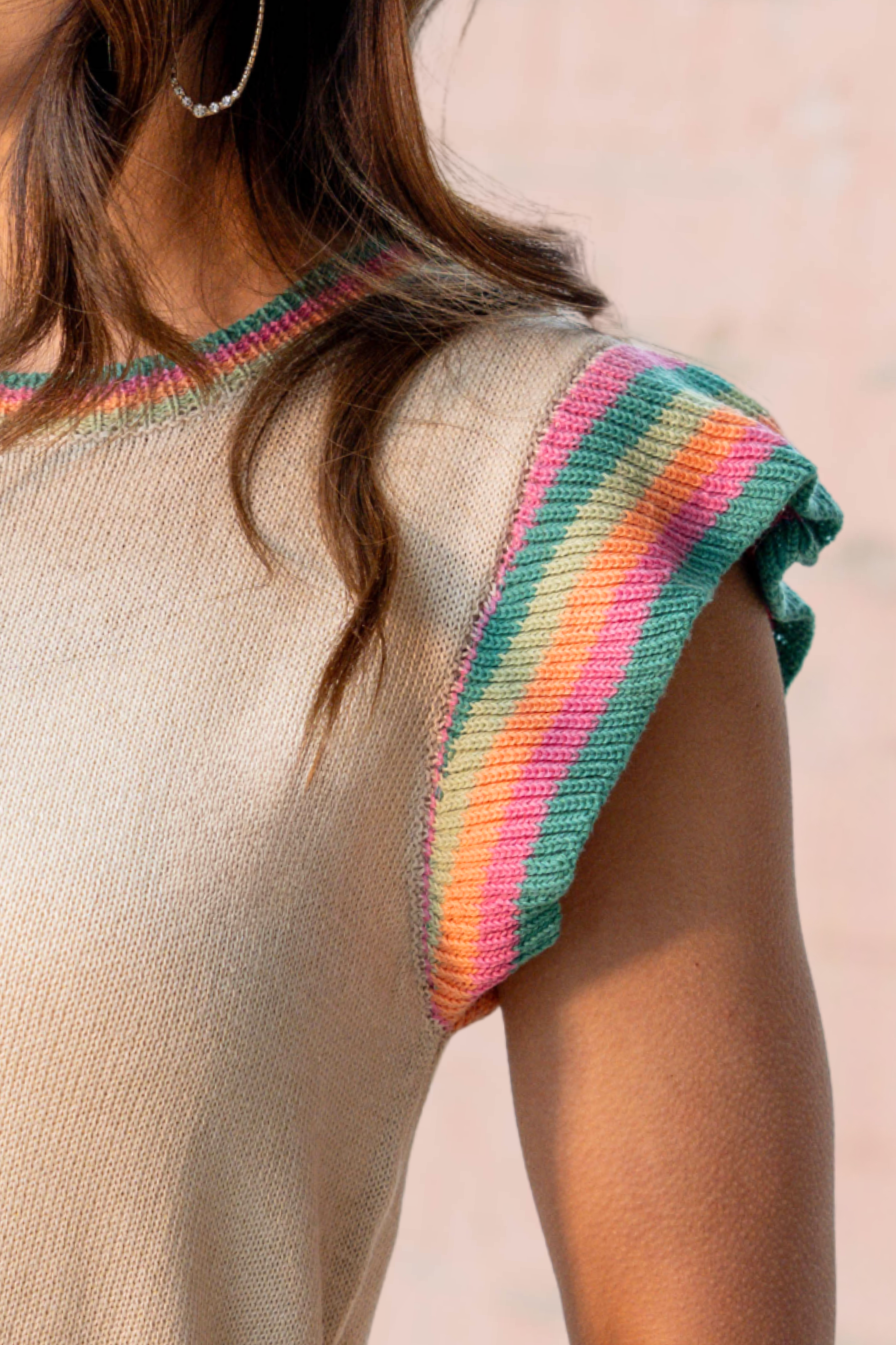 Bright, cheerful trim meets a soft-knit body for a top that feels joyful and effortless.