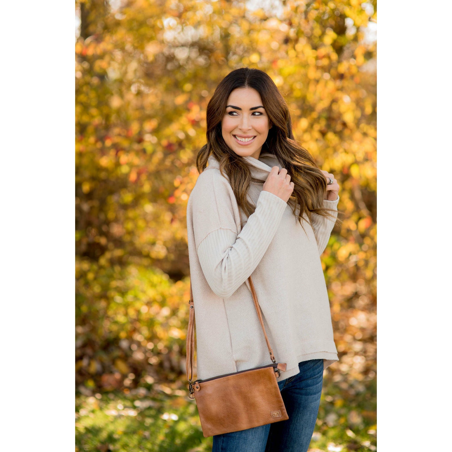 We are loving this poncho style sweater with ribbed sleeves! It is a great piece to wear with jeans and perfect for a day out!